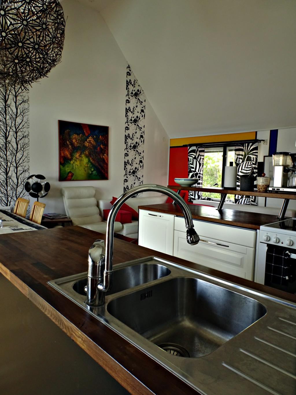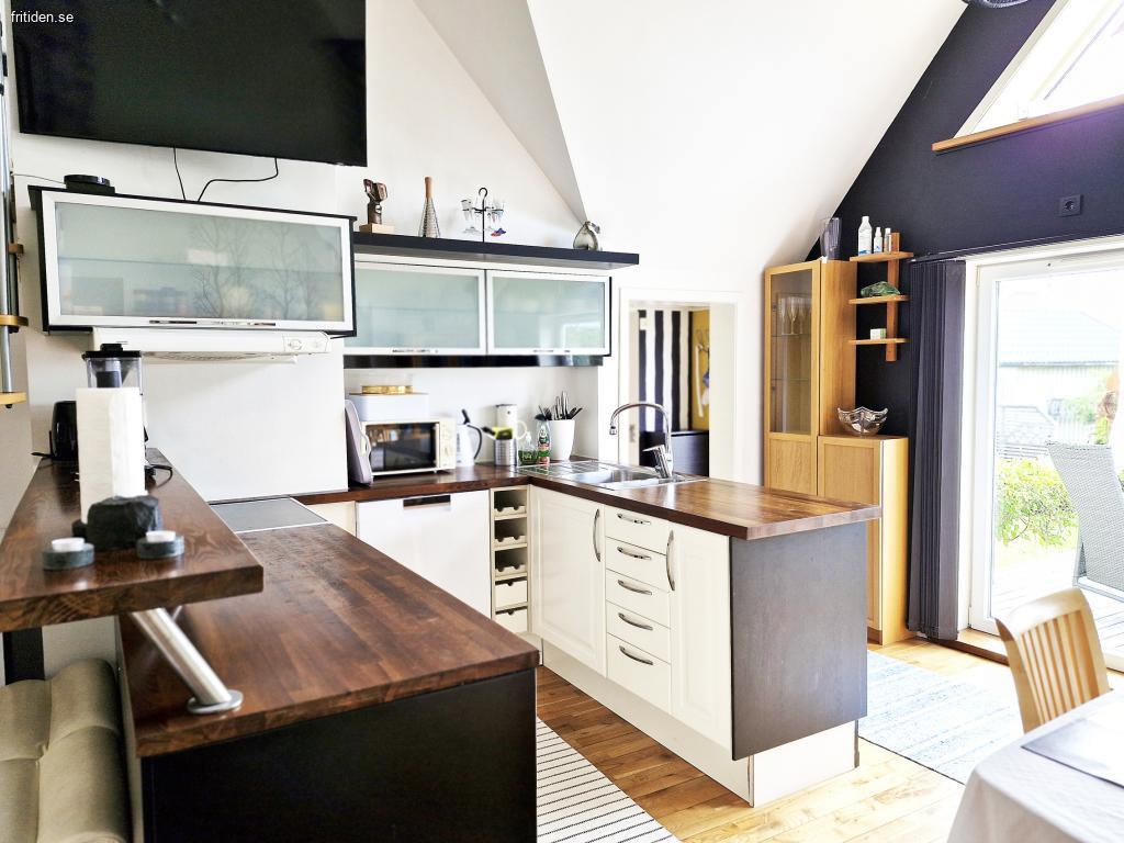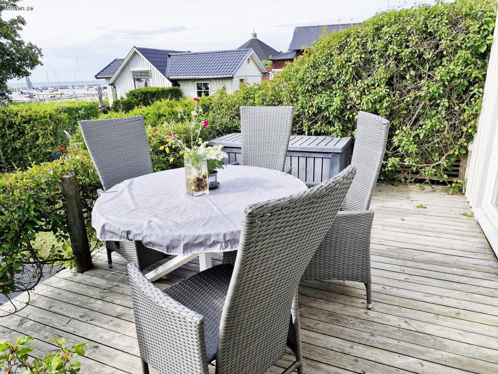 Andere; Waschmaschine/Trockner, TV (Basis Telia), Klimaanlage und WLAN-Verbindung. Die nach Westen ausgerichtete Terrasse ist komplett mit Gartenmöbeln, Kissenbox, Sonnenschirm und Grill ausgestattet.