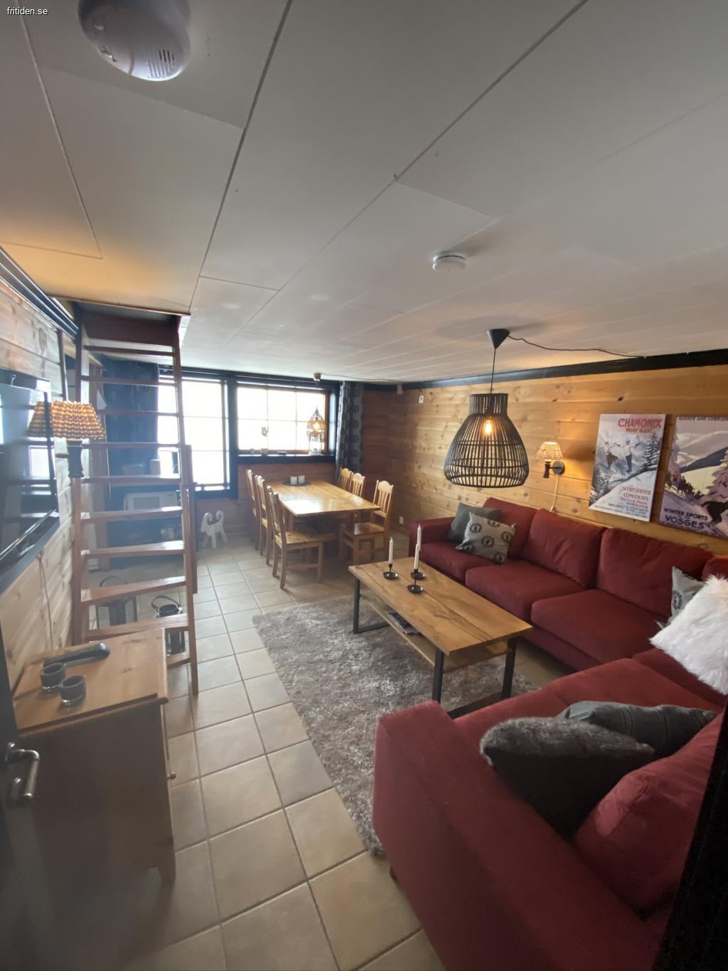 Övervåning á 80kvm 8 bäddar + 2st undervåningar á 60kvm 6 bäddar. Bekvämt gångavstånd till Sälfjällstorgets butiker, resturanger m.m.