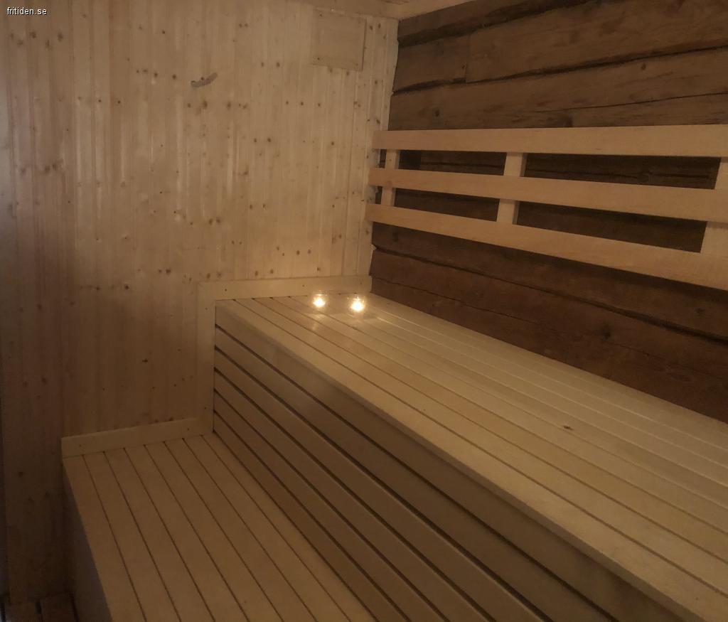Detta hus har bastu, omklädningsrum med toalett och dusch, ryskt bad, bordtennis, biljard, fotbollsspel, roddbåt, kanot, grillpaviljong med sittplatser under tak och stor rustikalt grillplats med stockar som sittbänkar och plats för öppen eld. Här finns gott om kvällsaktiviteter för hela gruppen. I källaren finns tvättmaskin och torktumlare.