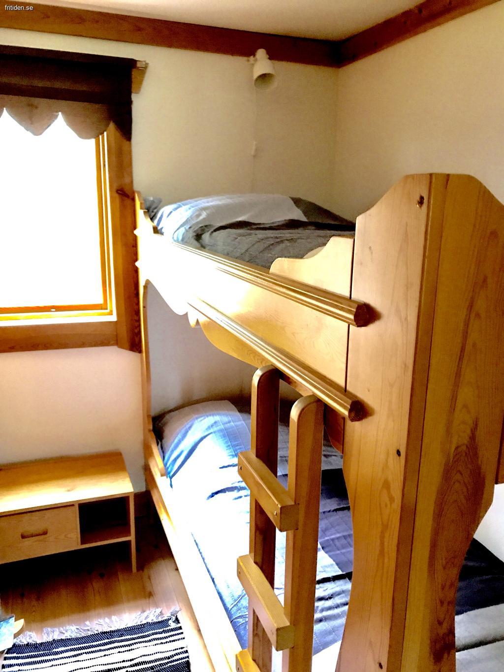 Es gibt ein Schlafzimmer mit Doppelbett und zwei Schlafzimmer mit Etagenbetten. Die oberen Betten sind kindersicher.