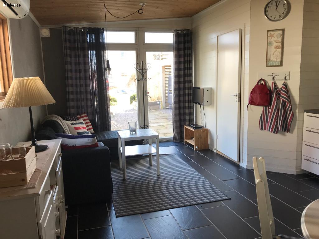 I vardagsrummet/köket finns en bäddsoffa för två personer. Köket är fräscht och fullt utrustat.