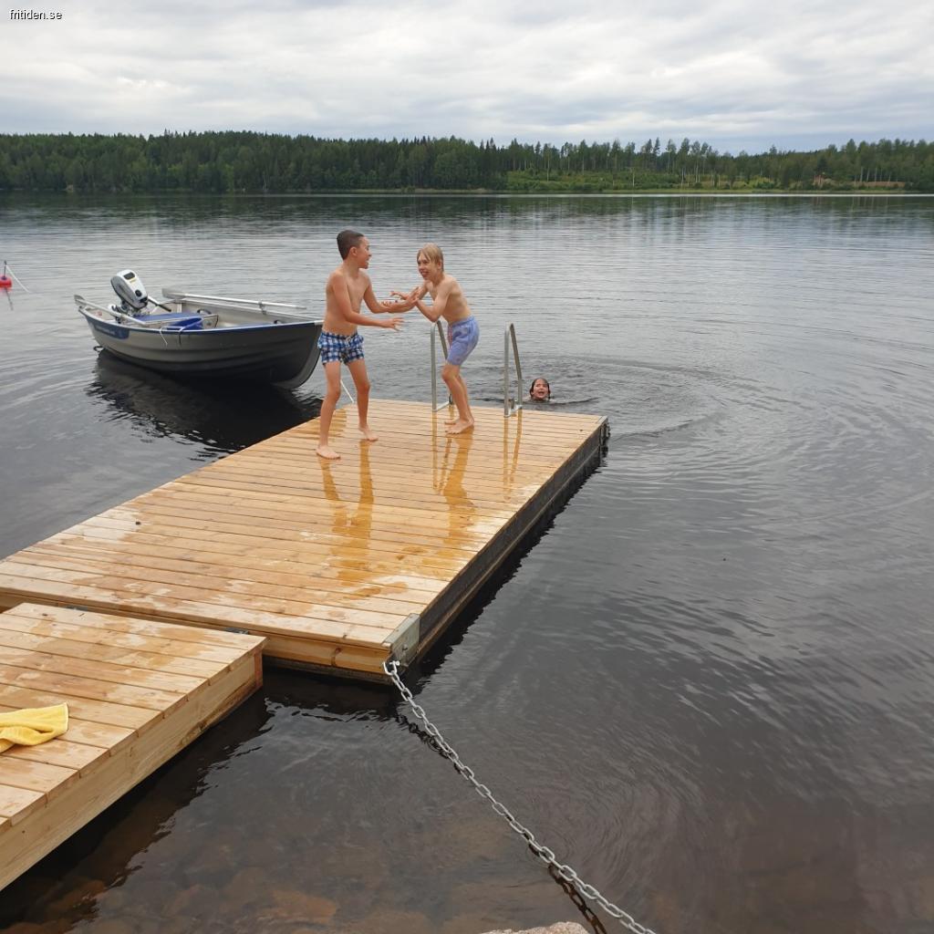 Neu gebaute hochwertige Blockhütte (2021) für 6 Personen. Fachwerk in Dalarna und auf einer Landzunge in Helgesjön platziert. Ungestörte Position 25m zum Wasser in drei Richtungen. Draußen gibt es eine Terrasse auf zwei Seiten der Hütte mit Morgen- und Abendsonne sowie Grillplatz (Lagerfeuer). Das Ferienhaus verfügt über drei separate Schlafzimmer, eines mit Hochbett. WC-Duschbad und eine große Wohnküche offen in nock mit Treppe zum Schlafboden. Eigener Steg m Badeleiter in bequemer Entfernung von der Hütte (20 m). New alum.båt m spin befindet sich am Steg und kann gemietet werden. Holzbefeuerter Whirlpool neben der Terrasse, wo man liegen und der Stille lauschen und gleichzeitig in drei Richtungen auf den See blicken kann, sollte erlebt werden.