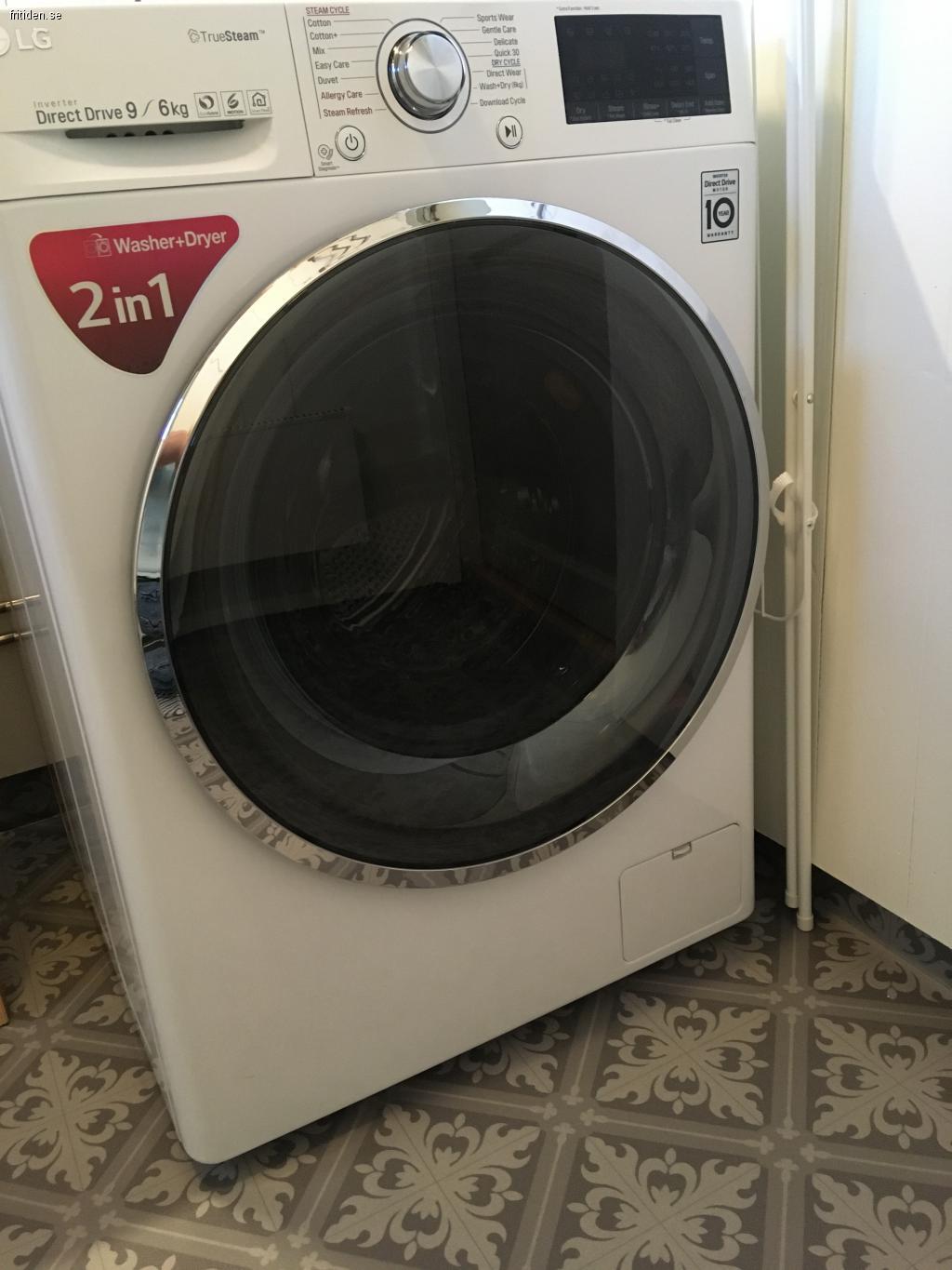 Das Badezimmer hat Wassertoilette, Dusche, Waschbecken + Waschmaschine/Trockner.