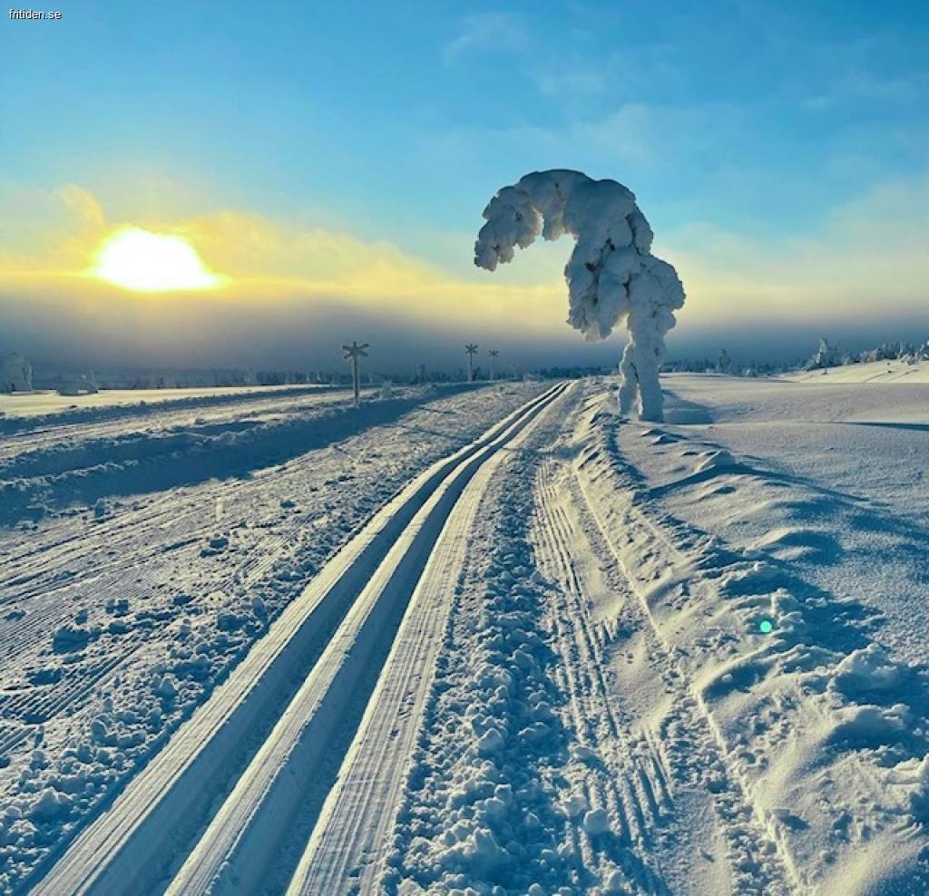 Precis utanför fönstret vid tomtgränsen går ett preparerat längdspår som leder dig upp på fjället och om du vill, kanske en våffla på Hemfjällsstugan ca. 4,5 km bort.