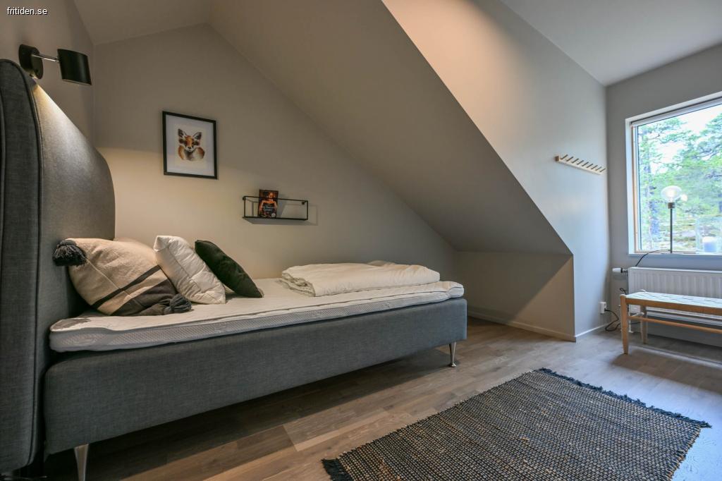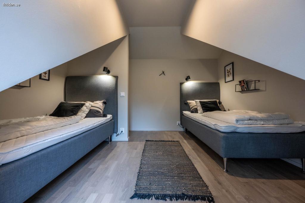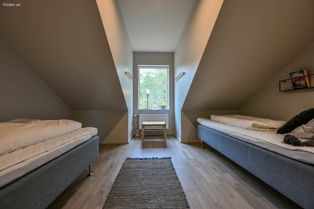 Det finnas 12 bäddar i huset. Två sovrum på övervåningen varav ett med två 105 sängar och ett rum med två 90 sängar.