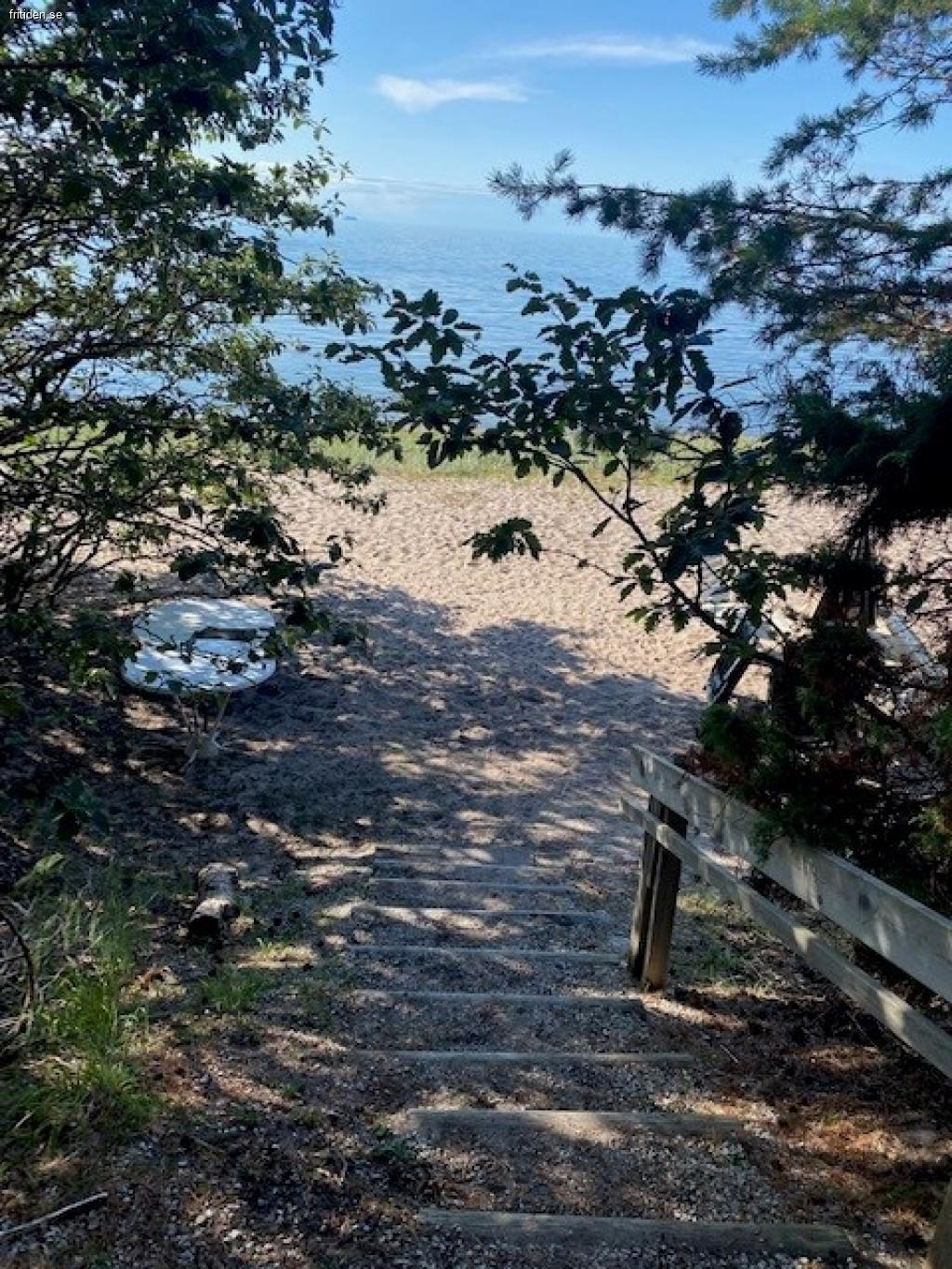 * Ett stenkast och egen privat stig till stranden