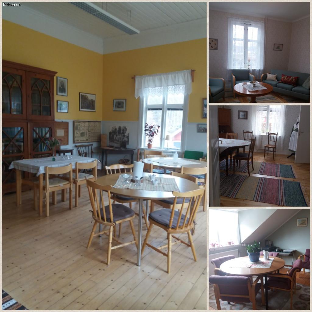 På bottenvåningen finns en samlingssal, med plats för ca 30 sittplatser om du ska duka. Ytterligare två rum och kök på bottenvåningen. Tre toaletter, varav en med dusch och handikappanpassning.