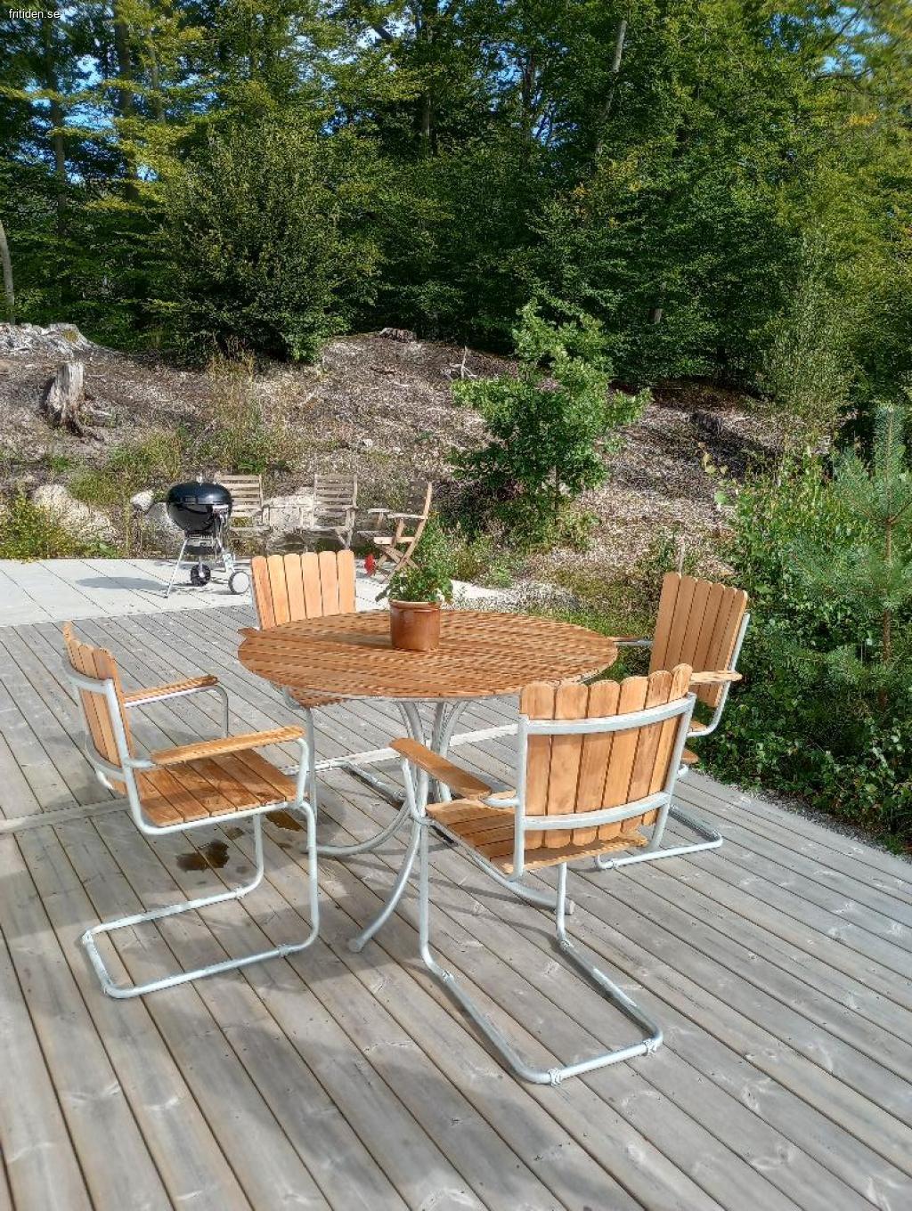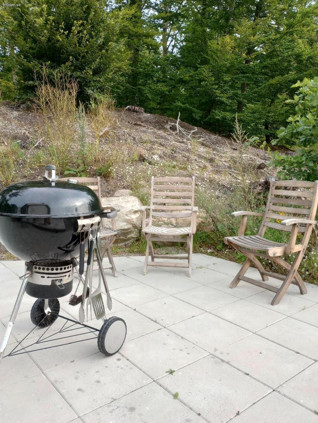 Stort vardagsrum med fullt utrustat kök, soffgrupp , badrum med dusch och toa, ved kamin, flera trevliga uteplatser med möbler och grill. Tillgång till Wifi.