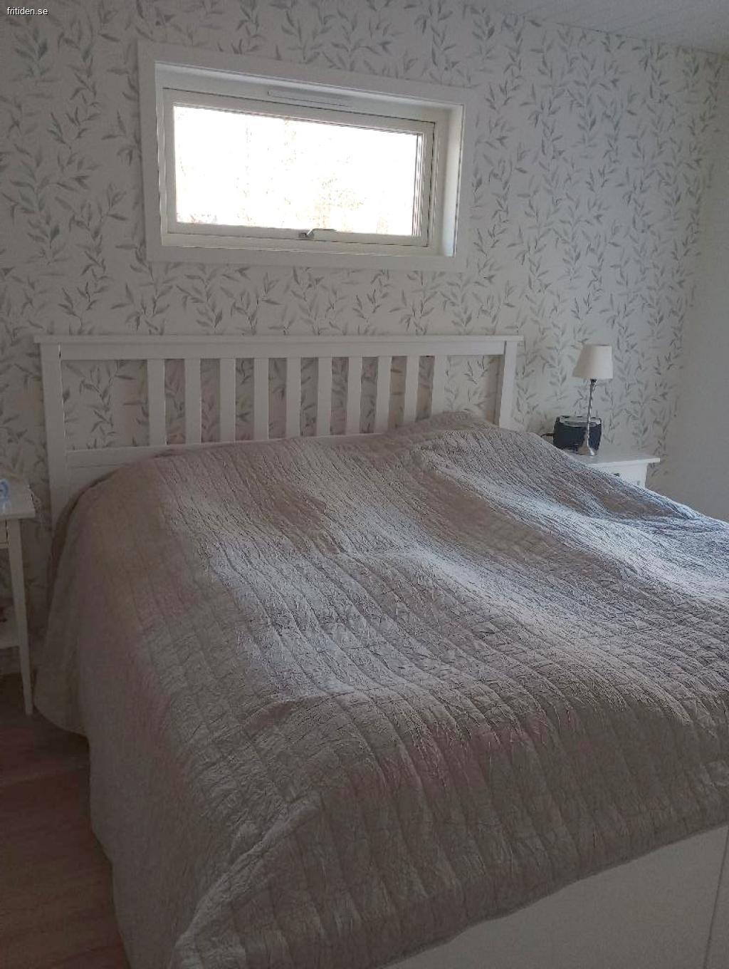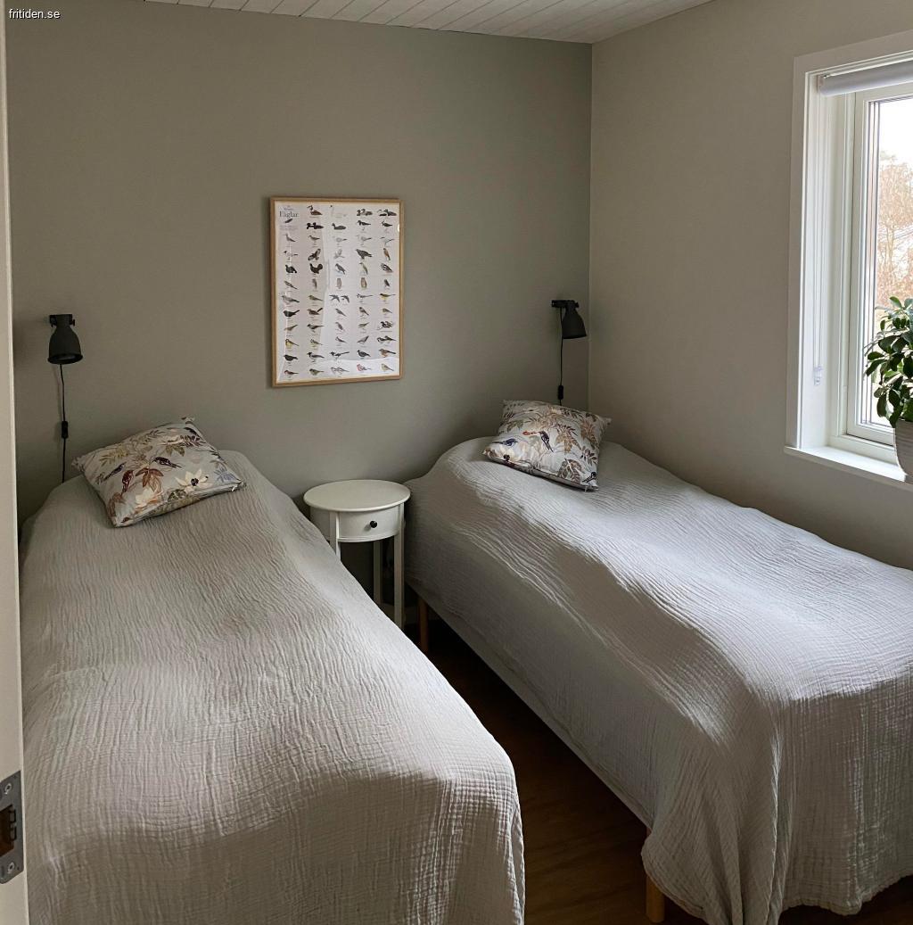 I stugan finns tre sovrum, ett med dubbelsäng (180), två med vardera två enkelsängar (90).