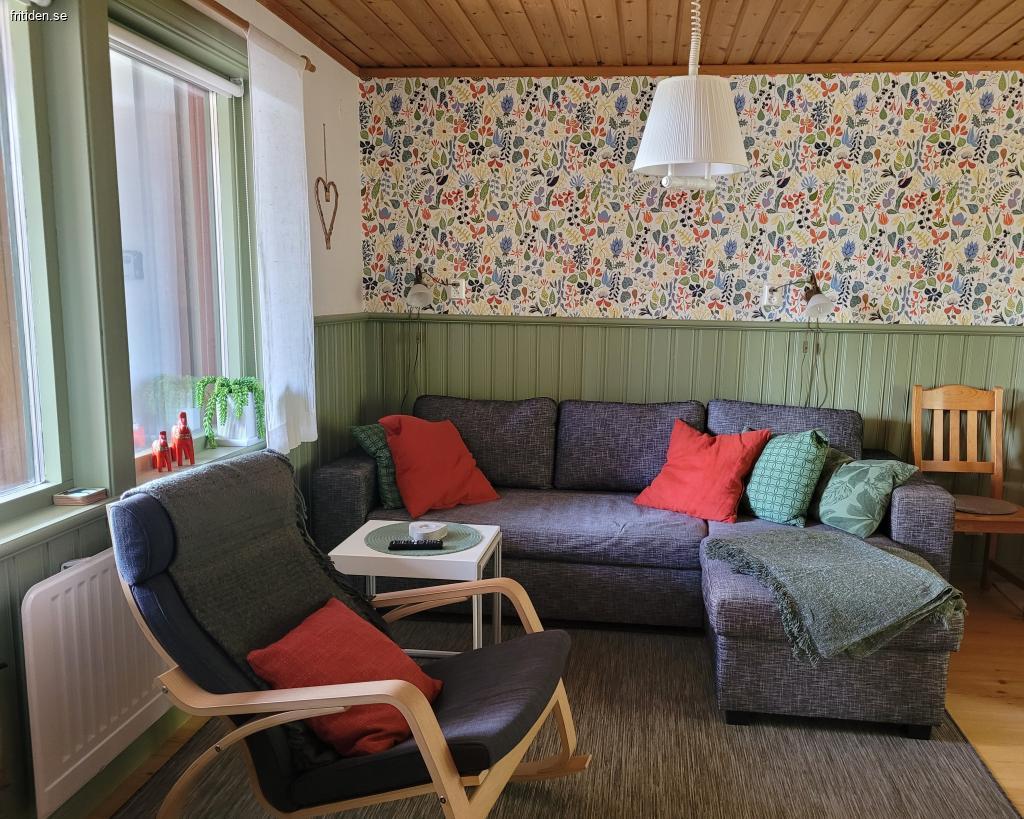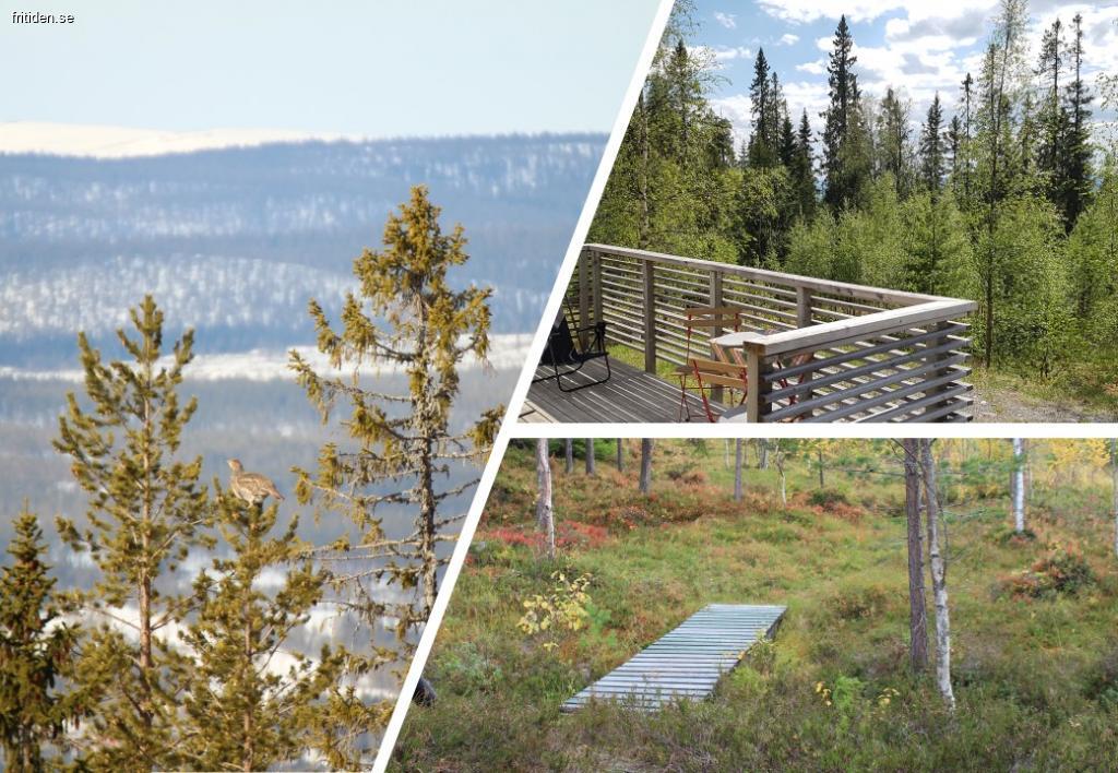 Läget är avskilt och fridfullt, längst ut på sin väg, med skogen som granne. Altanen är vänd åt väster, med sol från förmiddag till kväll och utsikt mot norska fjällen. Ostört läge, ingen biltrafik.