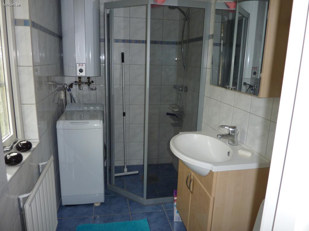 Det finns ett modernt badrum med duschkabin samt tvättmaskin.