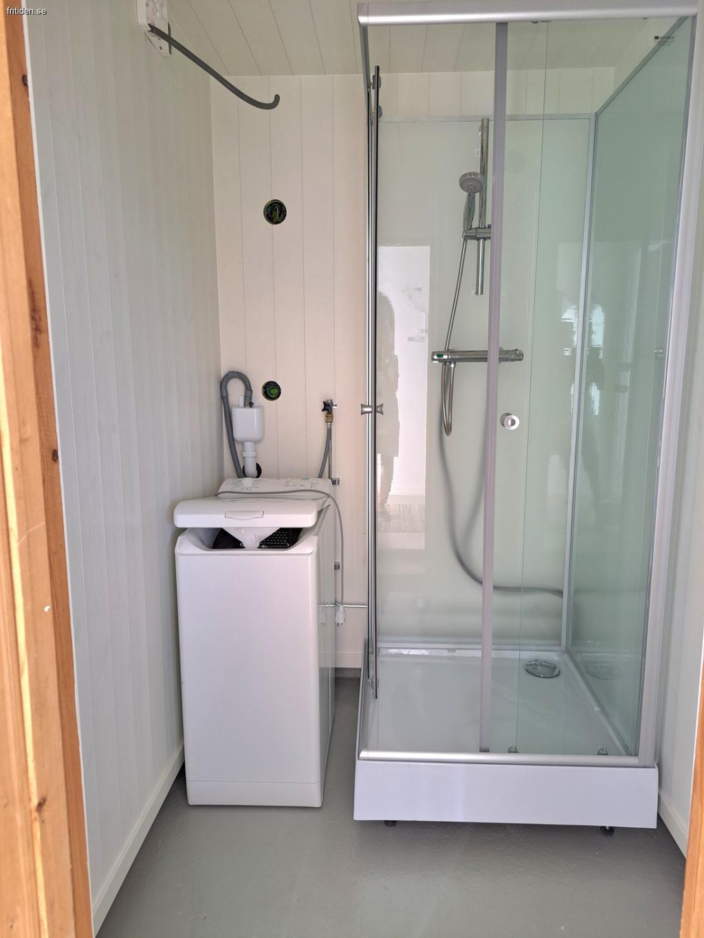 separat duschrum med tvättmaskin