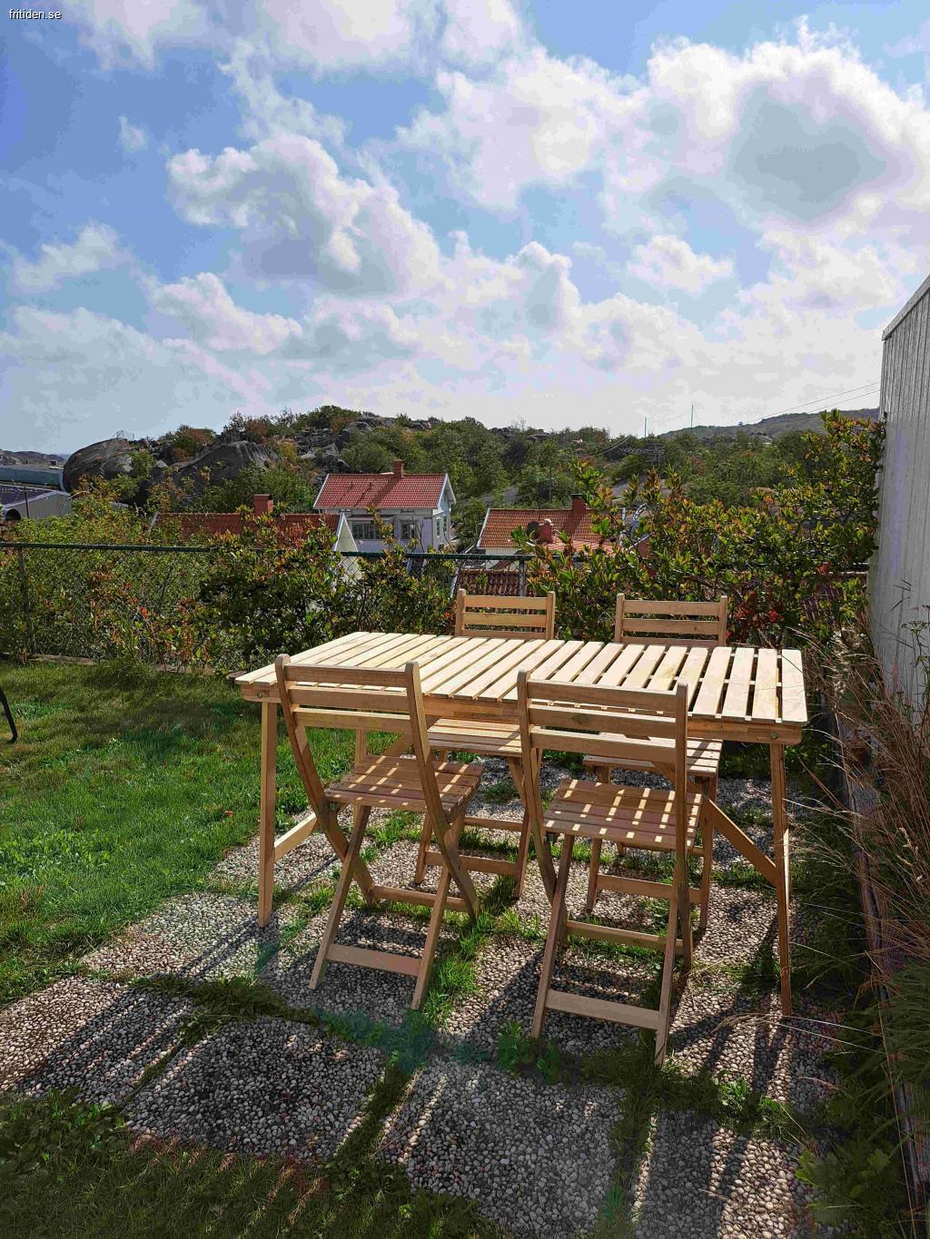 utematbord för fyra personer samt två solstolar