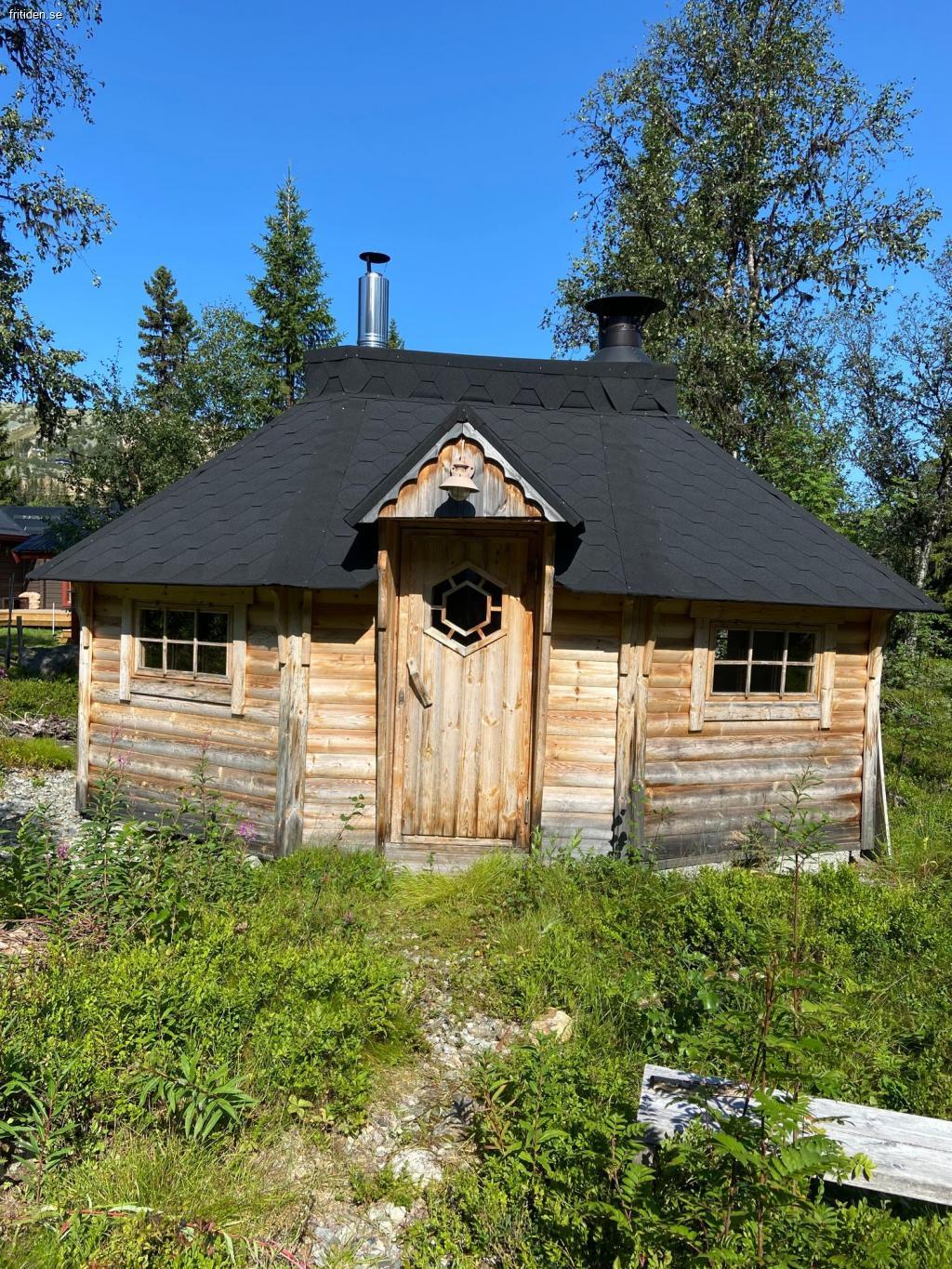 Utgång till bastu/grillkåta (varje lägenhet har en egen bastu/grillkåta) via altan på baksidan