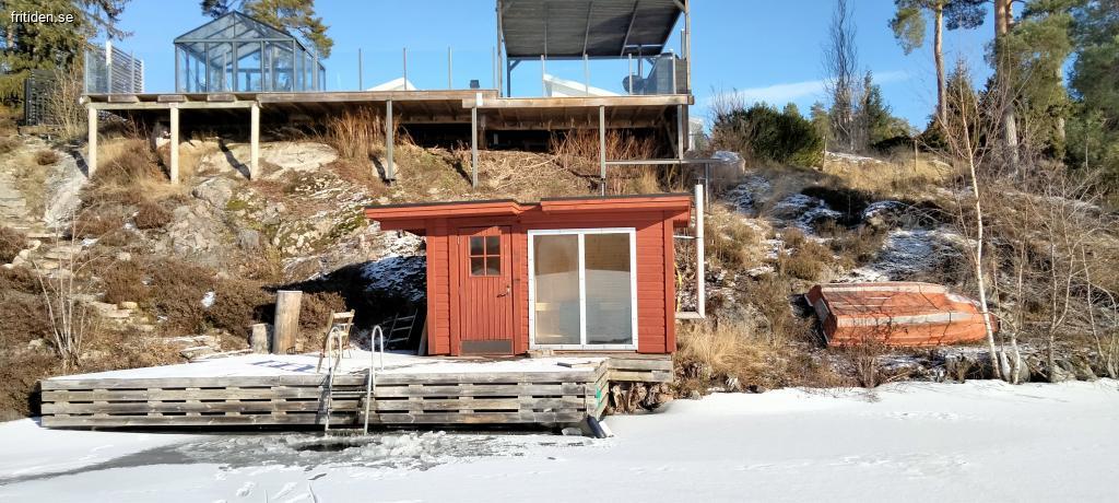 Privater Anlegesteg und Sauna, Zugang zu Ruderboot und Kajak. Badebereich für Kinder mit Strand und Stegen im Umkreis von 400 m.