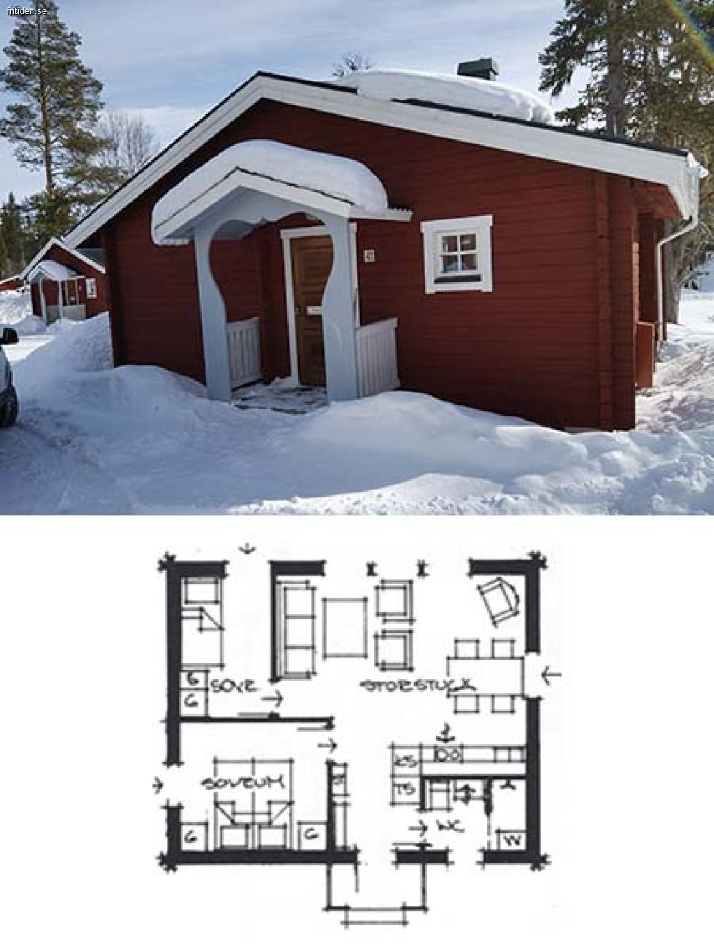 Stuga 43 med 4 bäddar i snösäkra Messlingen fritidsby, Baggården.