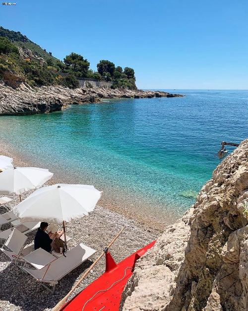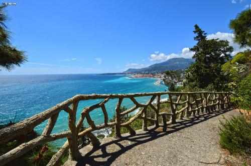 På smala trappor och stigar promenerar man på 10 minuter ned till den avskilda stranden Darsanùn eller populära Balzi Rossi med fina klippor intill. Några hundra meter bort passerar man gränsen till Frankrike och kan fortsätta på strandpromenaden i Menton. Här finns ett stort antal restauranger, caféer, affärer och en charmig medeltida stadskärna. En