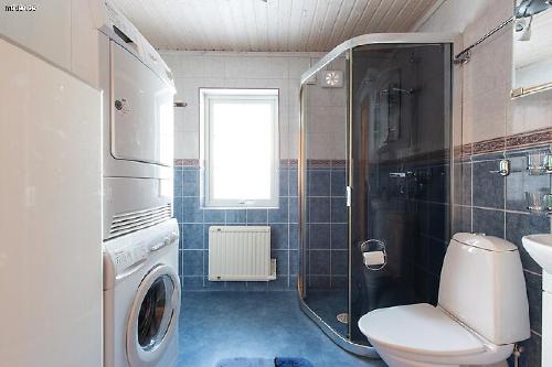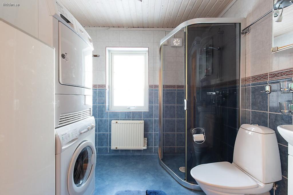 Badrum: Här finns 1 badrum med en bastu och e separat toalett. Även tvättmaskin/torktumlare finns i stugan.