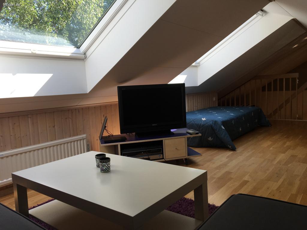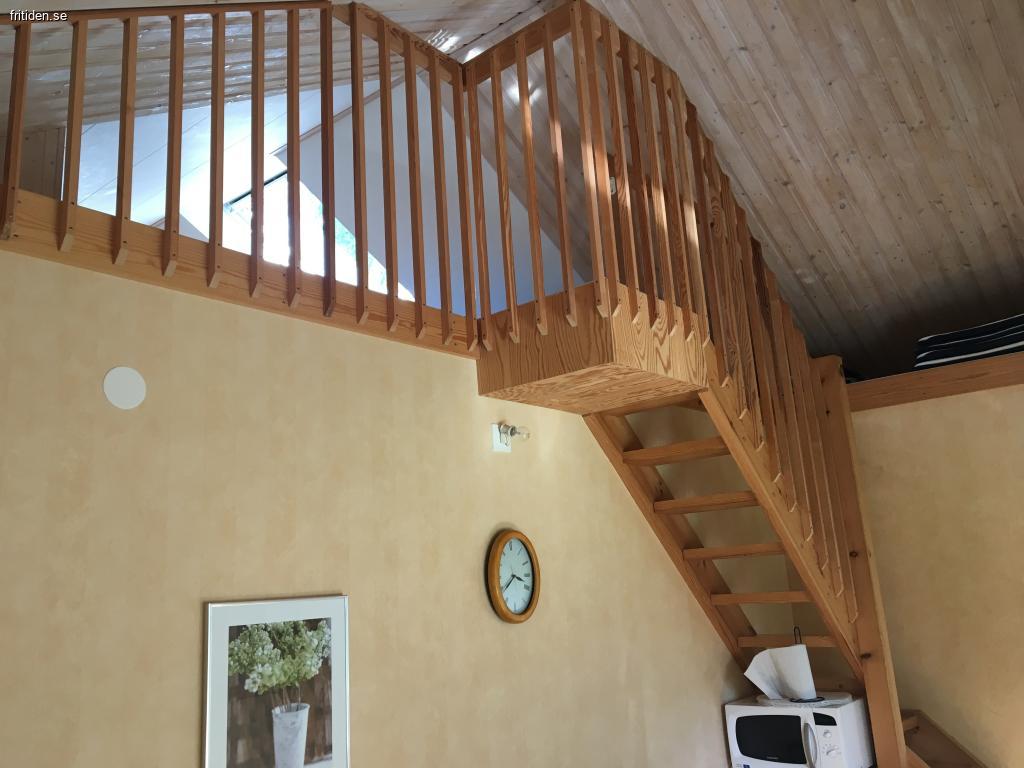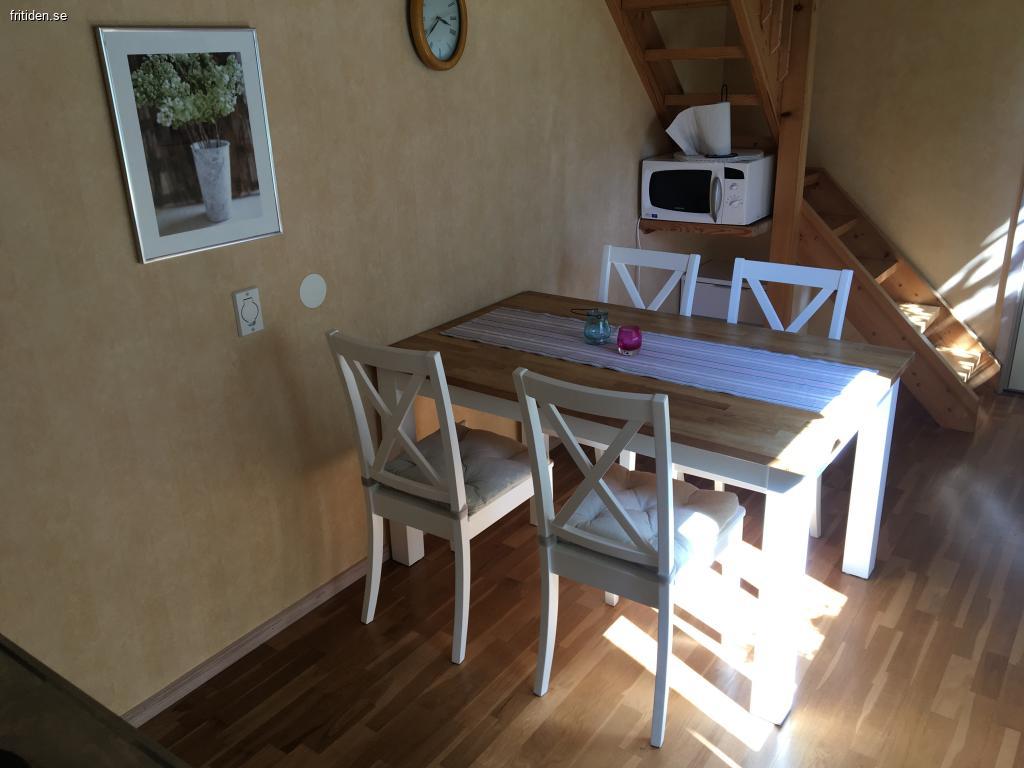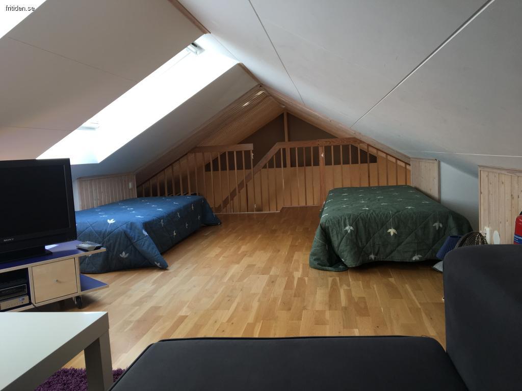 Matplats för 4-5pers, trinettekök, micro, kaklat badrum med golvvärme, dusch, toa. Plan 2 med 2st sängar samt bäddsoffa(2bädds), soffbord samt TV. Rummet är försett med 2st stora takfönster och har begränsad takhöjd. Parkettgolv i hela stugan.