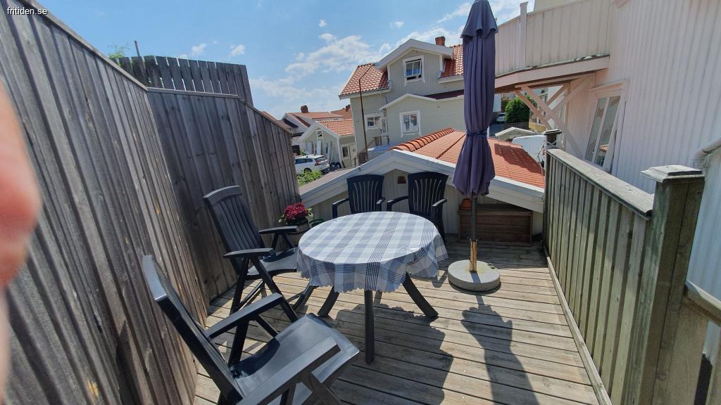 Lägenhet i markplan egen ingång och altan i gamla Smögen nära hamnen men lugnt. Parkeringsplats ingår liksom wifi.