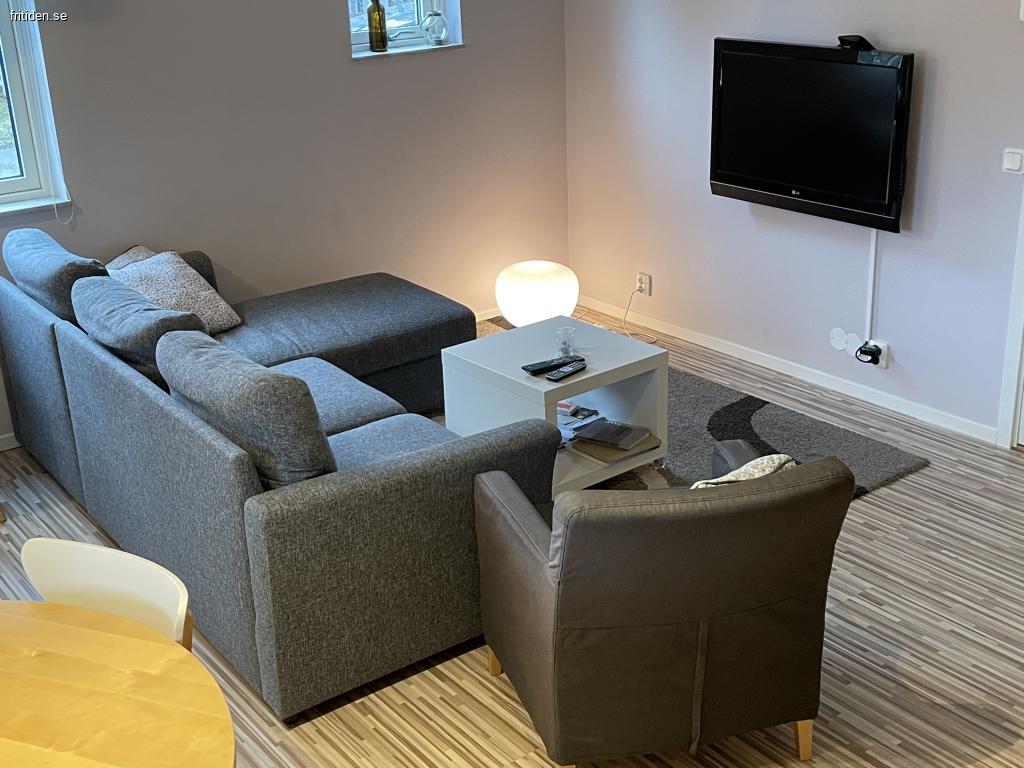 Two separate bedrooms with two comfortable beds in each. A large room including kitchen, diningplace and a TV-corner with a bedsofa for two. A fresh bathroom with shower and a washing machine. Outdoors a nice garden with barbeque and surrounded by beautiful nature.