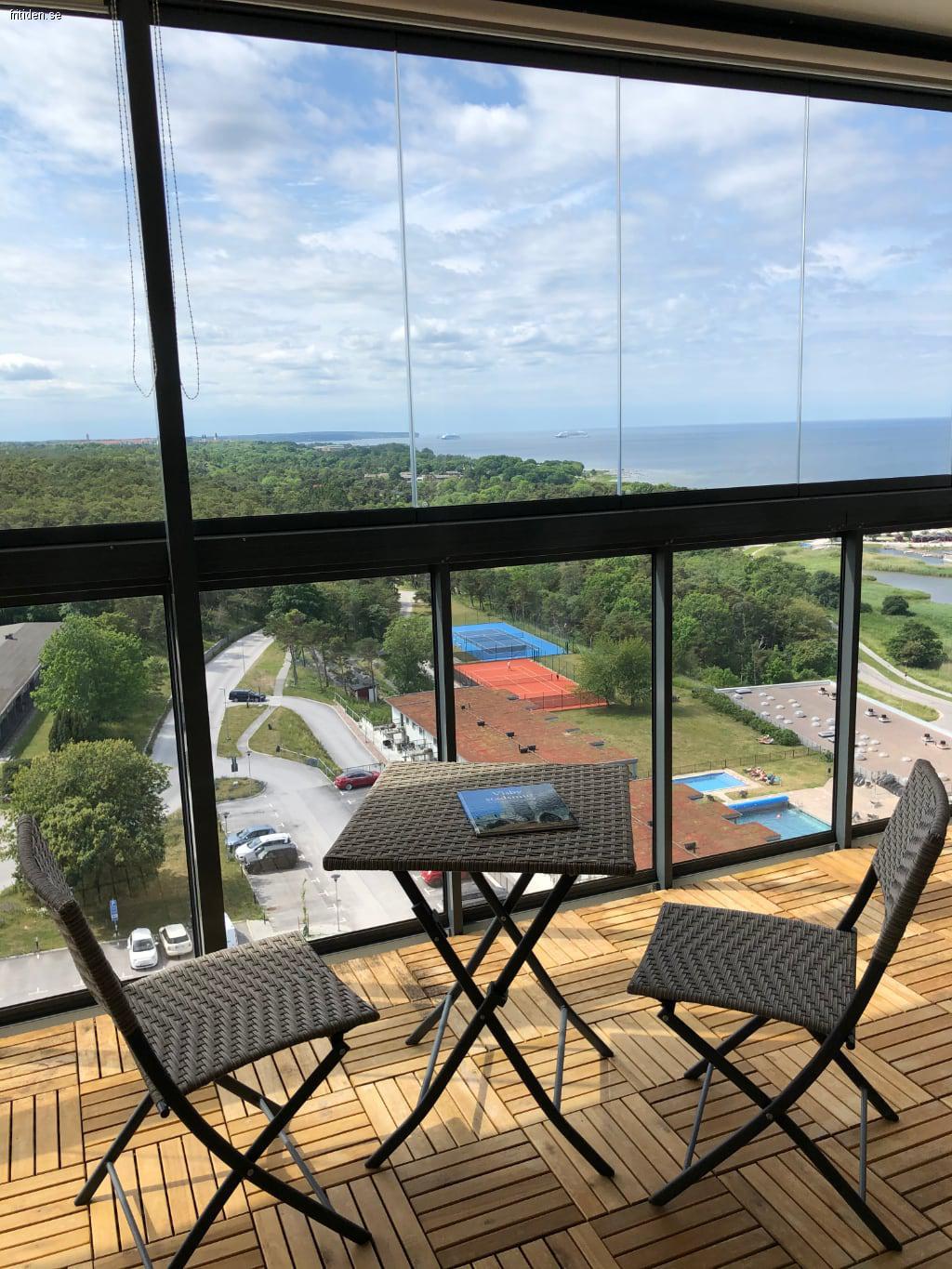 Modern lägenhet i toppskick med alla bekvämligheter, mycket bra läge nära vackert promenadstråk längs havet till Visby stad. Fantastisk balkong med magisk utsikt över havet, matplats och soffa. Tillgång till uppvärmd fräsch pool är ett stort plus Värdparet är mycket trevliga och serviceinriktade. Har hyrt flera år och trivts mycket bra!
