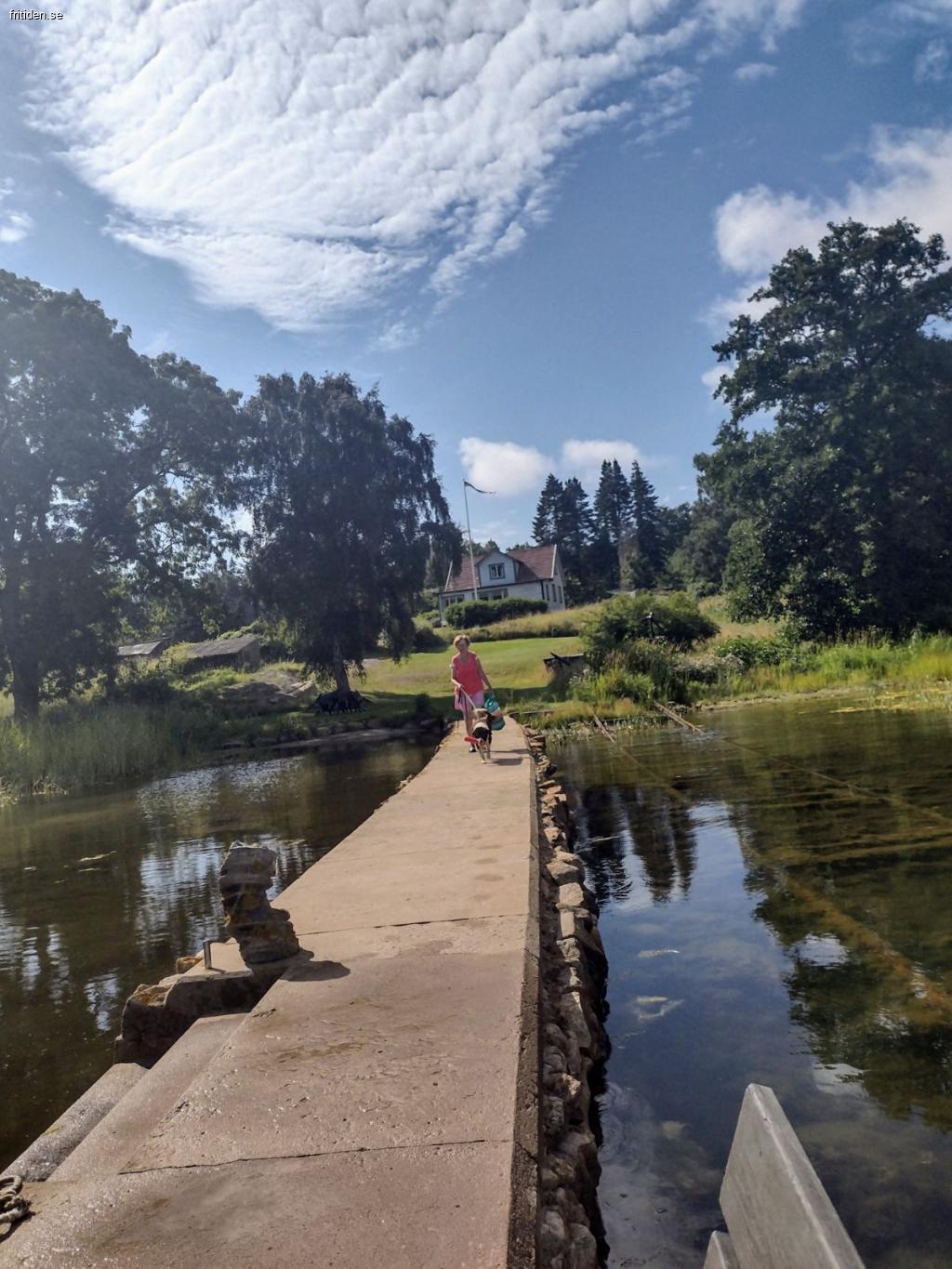 Aspö is an island without a bridge, so you have to take the ferry, which is free. It takes about 25 minutes.