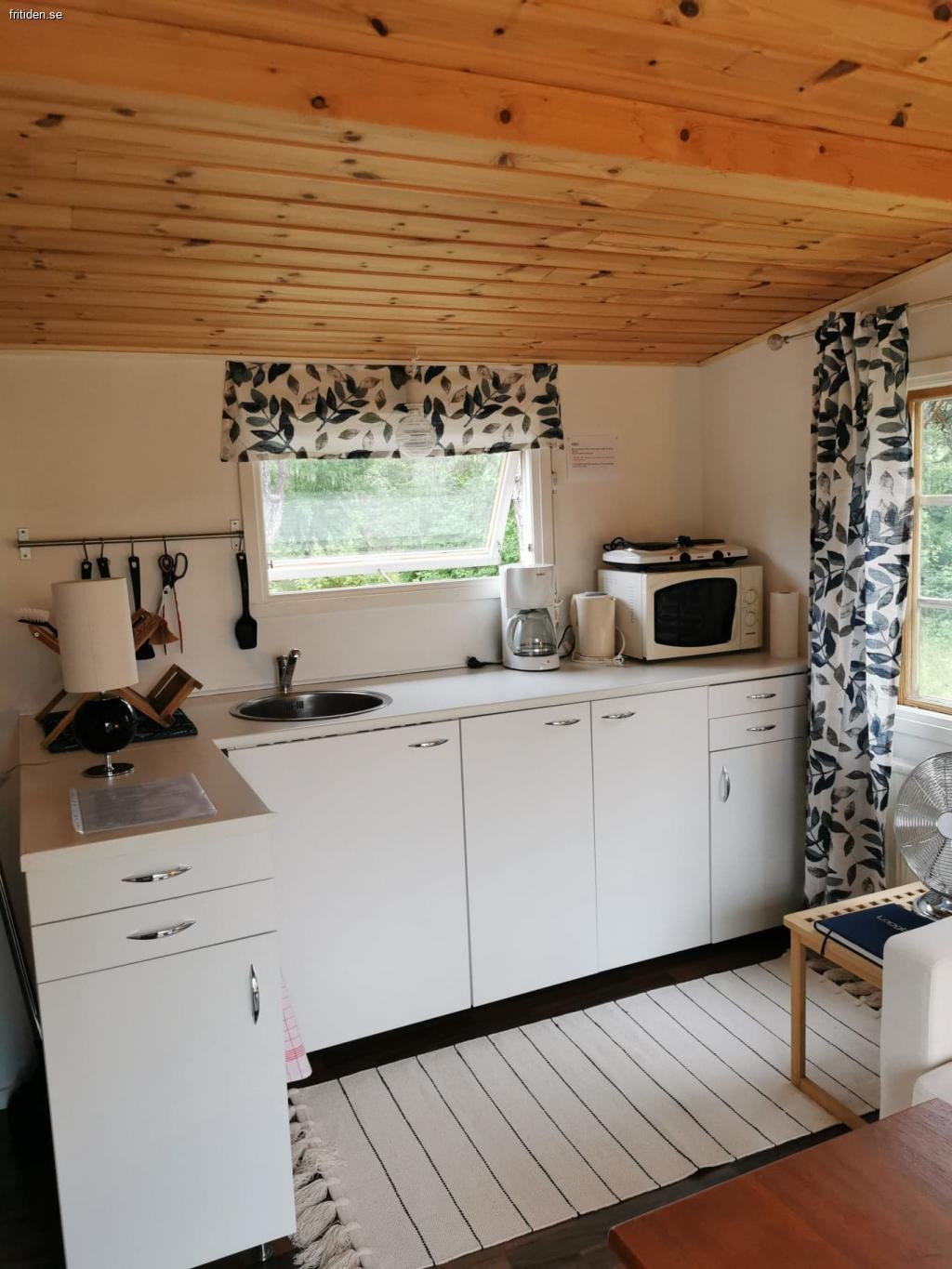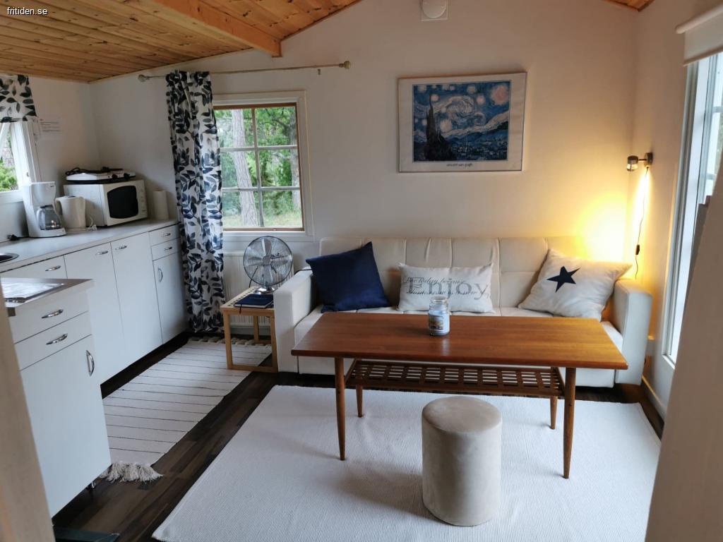 Kitchen area with hobs, fridge and freezer, sink, micro and good kitchen equipment. A baby chair is available. Patio with barbecue and hammock. Walking distance to beaches and to Krusmyntagården (a restaurant and garden), as well as 3 km to Lummelundagrottan with the caves. No fiber, but mobile networks work. Change day is Sunday. Welcome!