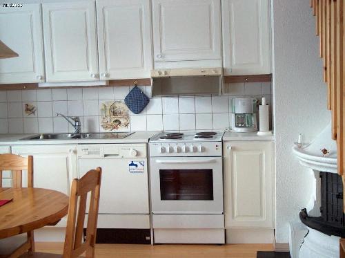 Fullt utrustat kök med diskmaskin, kyl, frys, spis med ugn, och mikro.