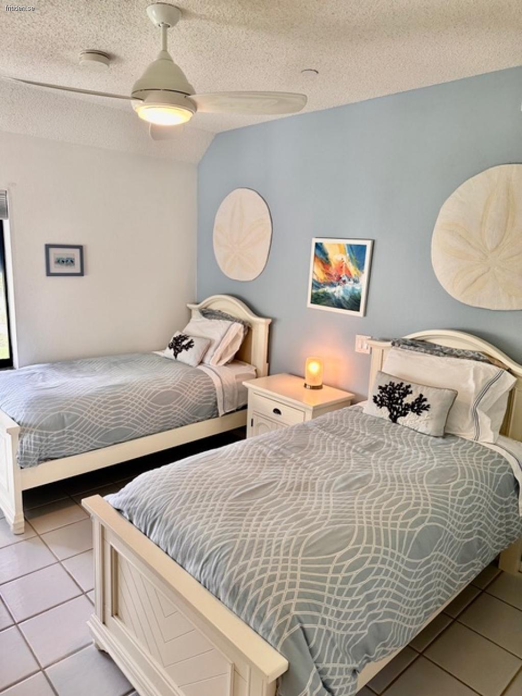 Townhome 2 bedrooms ( one with a Queen size bed and the other with 2 single beds ) , 2 baths, 2 bikes, fully equipped kitchen and laundry room with washer /dryer. Lanai with sitting area. Located on the beautiful grounds inside the Bay Isles gates. Quiet neighbourhood with Pool, Gym, Tennis and Pickleball. Access to a private beach with parking - 1 minute drive or 5 minute bike ride. The living room/open concept kitchen/dining room has high ceilings, is bright and spacious. View of Sarasota Bay from the living room.