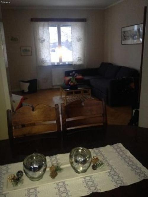 Large two-piece living room, in the first part of the living room there´s a wood stove, in the second part of the living room there´s a sofa bed with 2 beds.