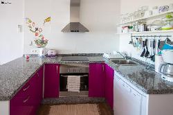 60 m from the sea and the beach, between Fuengirola and Marbella. Panoramic sea views, both from the large balcony, the width of the apartment and one of the upper floor bedrooms. Large lawn with swimming pool down to the sea. The terrace is completely screened and windproof. Sun all day on the balcony with retractable awning. You not only enjoy the sea with your eyes you hear the sound of the waves. AC, wifi, internet and TV. Two floors. First floor - fully modern kitchen in line with the living room furnished with table, sofa bed etc. The room continues out to the balcony in the full width of the apartment. Bathrooms on both floors. First floor an external staircase up. Second floor has two bedrooms and wardrobes. Close to everything even if you have problems walking. Fully fenced area. Newly renovated. Stairs with double handrails. This object has these conveniences: