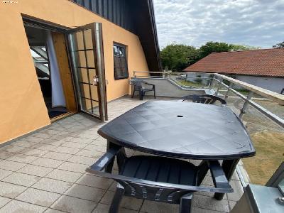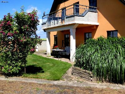 Del av nybyggt hus. Lägenheten färdigställdes 2005. Den är på ett plan och belägen en trappa upp med en stor balkong (10 kvm) som vetter åt väster med en fantatisk utsikt och solnedgång. Sol från 12-tiden beroende på väder och årstid.