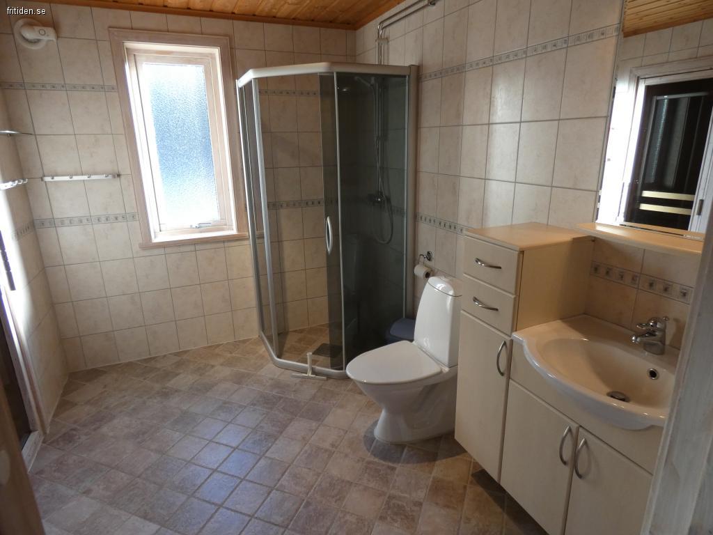 Hall med torkskåp/gästtoa/toalett med bastu och dusch/3 sovrum (2.2.4 pers) våningssängar.
