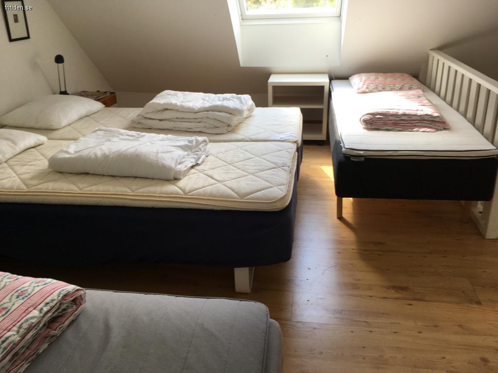 Sovrummet har 4 st 80cm resårsängar, som man enkelt kan möblera om för bästa komfort. Resebarnsäng och barnstol finns att låna.