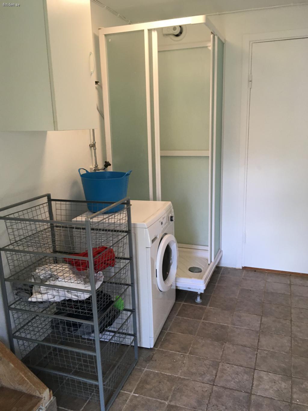 I rummet med toalett och duschkabin finns även en tvättmaskin.