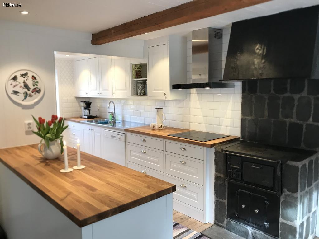 Huset är ett charmigt och mysigt litet torp på 60kvm med en veranda framtill. Huset består av ett stort vardagsrum som innehåller en 55 tums ledtv, hörnsoffa, stort matbord med plats för 6 pers + ett mindre matbord med plats för 2 pers, vitrinskåp och en braskamin. Här kan du njuta av en mysig värmande brasa framför kaminen. Vardagsrummet har en öppen planlösning ihop med köket som är fullutrustat och innehåller allt som du kan tänkas behöva, stort kyl o frys, inbyggnadsugn och micro, spis, diskmaskin, kaffebryggare och allt husgeråd som behövs. I köksskåpen finns Rörstrands trevliga "Mon Amie" servis för lite extra vardagslyx och i vitrinskåpet finns finservisen och finglasen för att sätta lite extra guldkant på semestern. En trevlig gammal järnspis förgyller köket, men denna får dock inte eldas i.