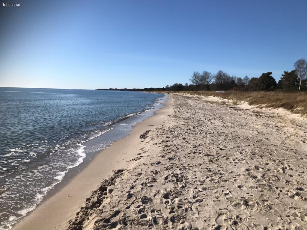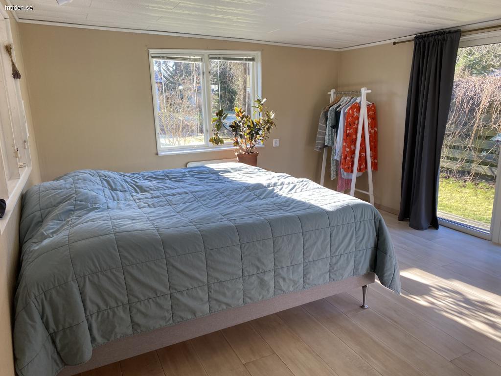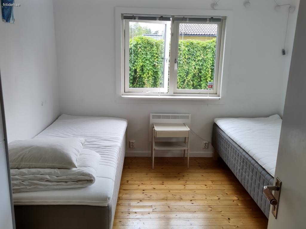 Fint litet hus 7 minuters promenad från havet. Beddingestrand bjuder på en lång strandpromenad som är fantastisk året om. Huset har tre rum varav två sovrum och ett vardagsrum, kök och badrum. Ett av sovrummen har två 90 cm breda sängar. Det andra sovrummet som är delvis öppet mot vardagsrummet har en dubbelsäng och en skrivbordsplats samt glasdörr ut till trädgården. I trädgården finns en inglasad altan dit vardagsrummet flyttar på sommarhalvåret. På sommarhalvåret finns också en stor studsmatta i trädgården.