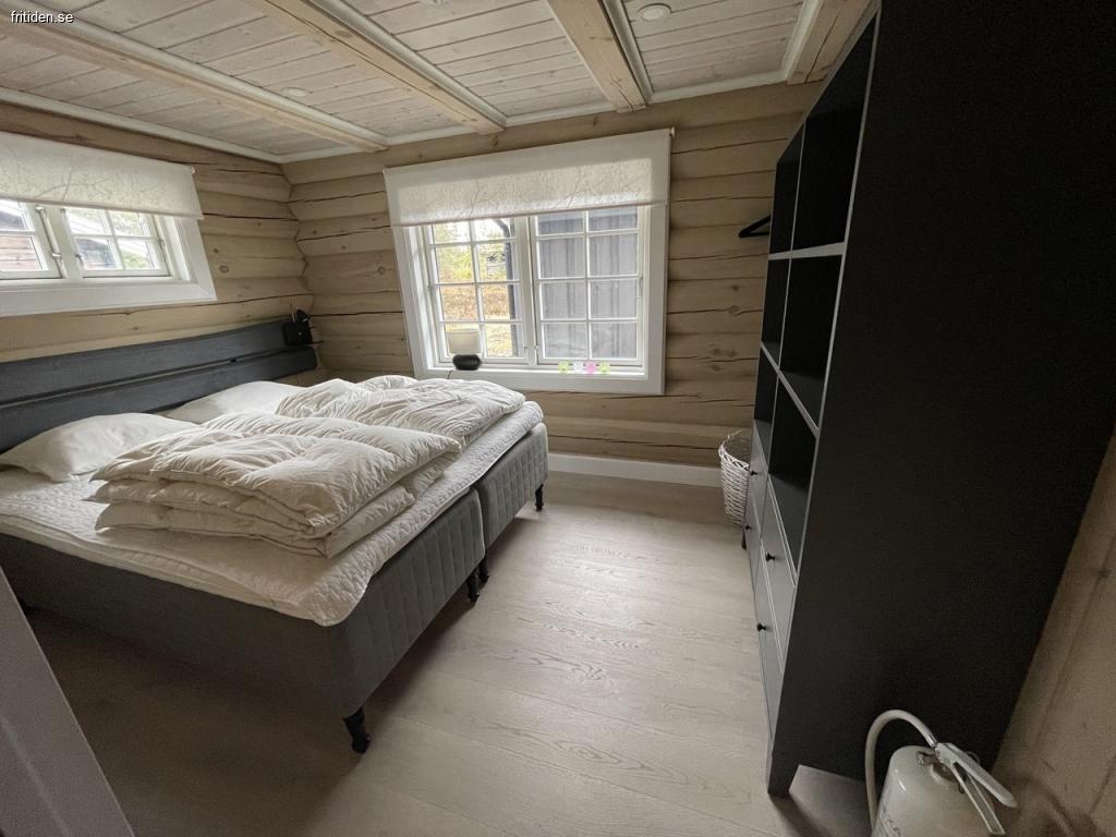 Stugan har 4 bäddar fördelat på ett sovrum med dubbelsäng (160*200) och ett sovloft med sovplats för två personer (180*200), se bilder.