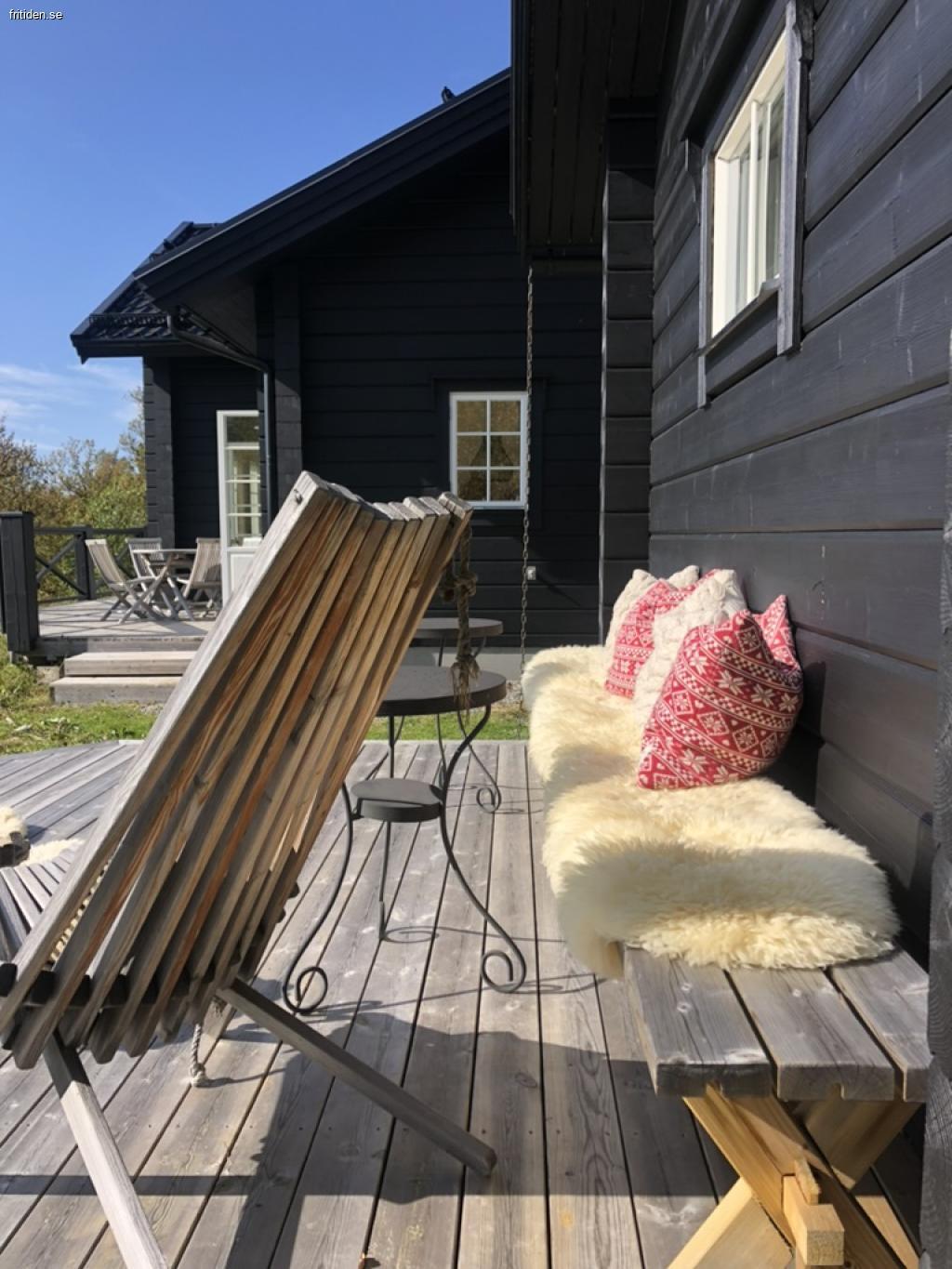 Vid garageväggen finns en mysig liten altan där man kan sitta och njuta av den fina utsikten.