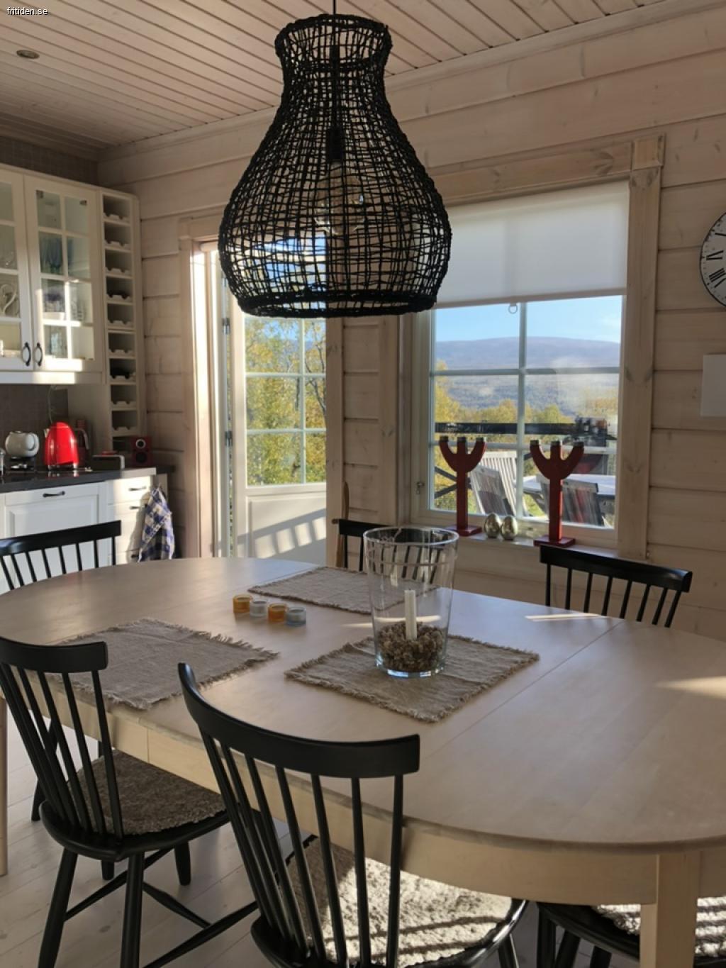 Huset är på 125 kvadratmeter med storstuga plus loft. Det har bästa solläge med en fantastisk utsikt mot Rödfjället. Sol från morgon till kväll på stor altan.