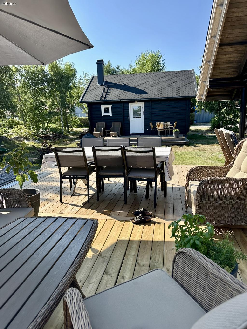 På tomten finns också vår stuga och ett uterum som tillhör huvudstugan. Det kan vara så att Vi också kan vara där främst under högsäsongen, när ni hyr så ni är beredda på detta. Under lågsäsongen får man vara beredd på att elda på i kaminen vid behov och sätta på värmen. Stugan är byggd som sommarstuga. Det informerar vi om när vi är klara med kontraktet.