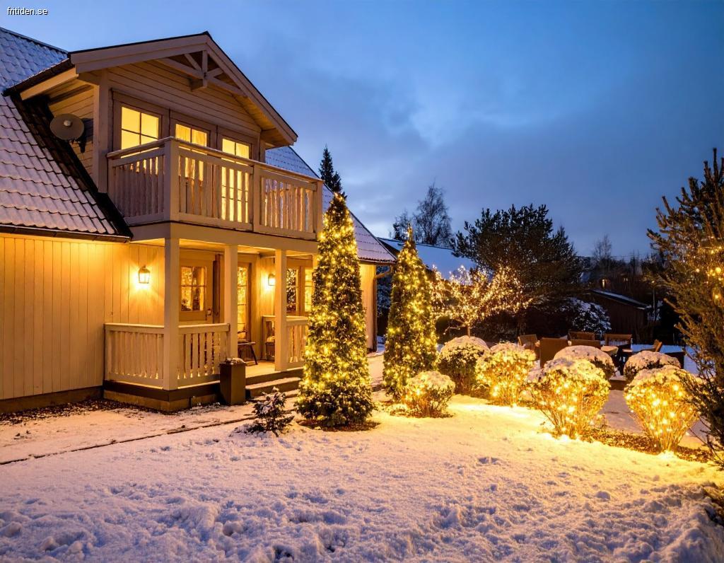 Med lekstuga, katvind, trädgård och mysiga ytor inomhus blir detta hem en plats där julens magi kan upplevas tillsammans med nära och kära.