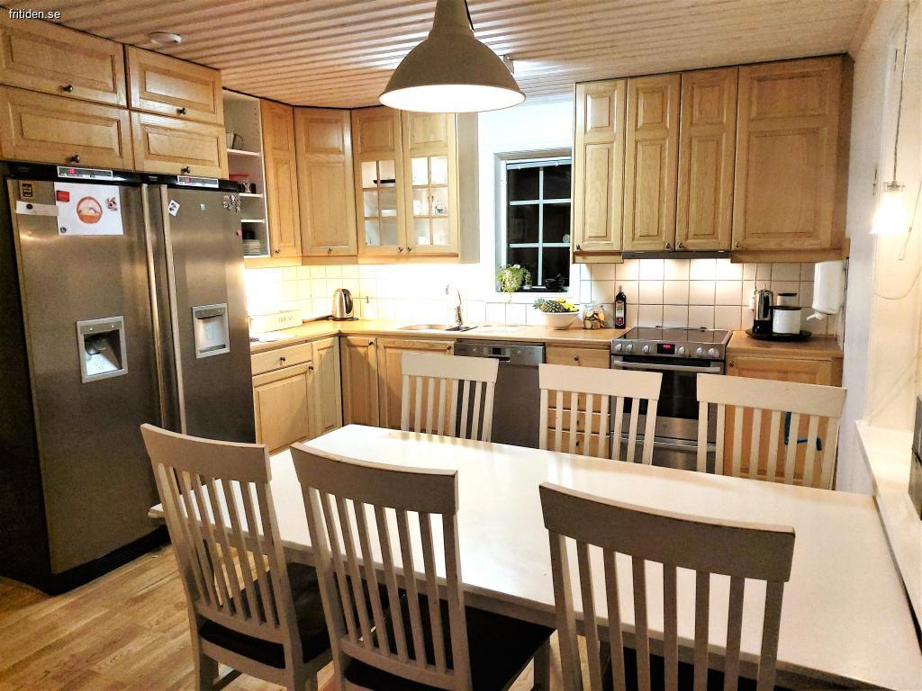 Köket är stort och ljust och ligger i öppen planlösning med vardagsrum och matplats. Om köks- och matbordet skjuts ihop finns plats för upp till 12 personer – perfekt för julmiddag eller nyårsfest. Fullt utrustat med induktionshäll, varmluftsugn, diskmaskin och kyl/frys. Balkongen erbjuder delvis utsikt över sjö och äng, och den stora trädgården ger plats för lek, snöbollskrig eller promenader i vinterskrud. För barn finns både lekstuga och katvind, och uppe finns ett extra alrum som samlingsplats för spel och mys.