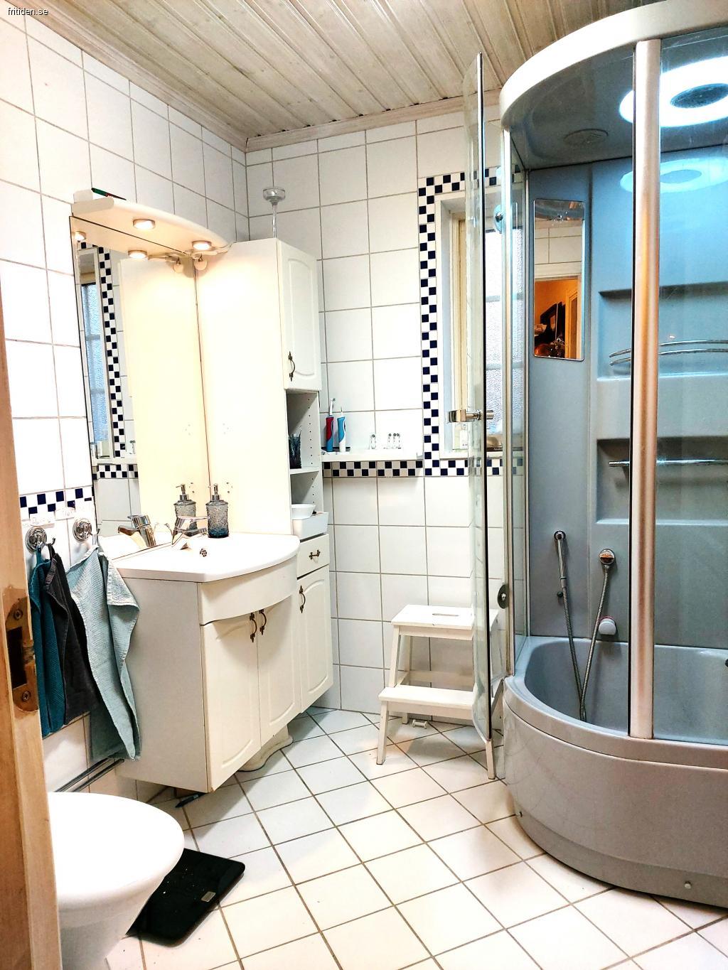 Två badrum gör morgon- och kvällsrutiner smidiga. På övervåningen finns ett badkar med dusch, och på bottenvåningen finns duschkabin och ett litet barns badkar. Efter en dag ute i vinterkylan kan ni koppla av i bastun eller samlas kring TV:n och internet för filmkväll eller spelstund.