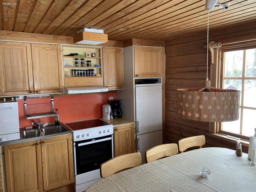 Köket : diskmaskin, ny spis med induktionshäll och ugn (barnlås), kyl och rejäl FRYS, mikro, kaffebryggare, våffeljärn, brödrost, vattenkokare mm. Torkskåp finns.
