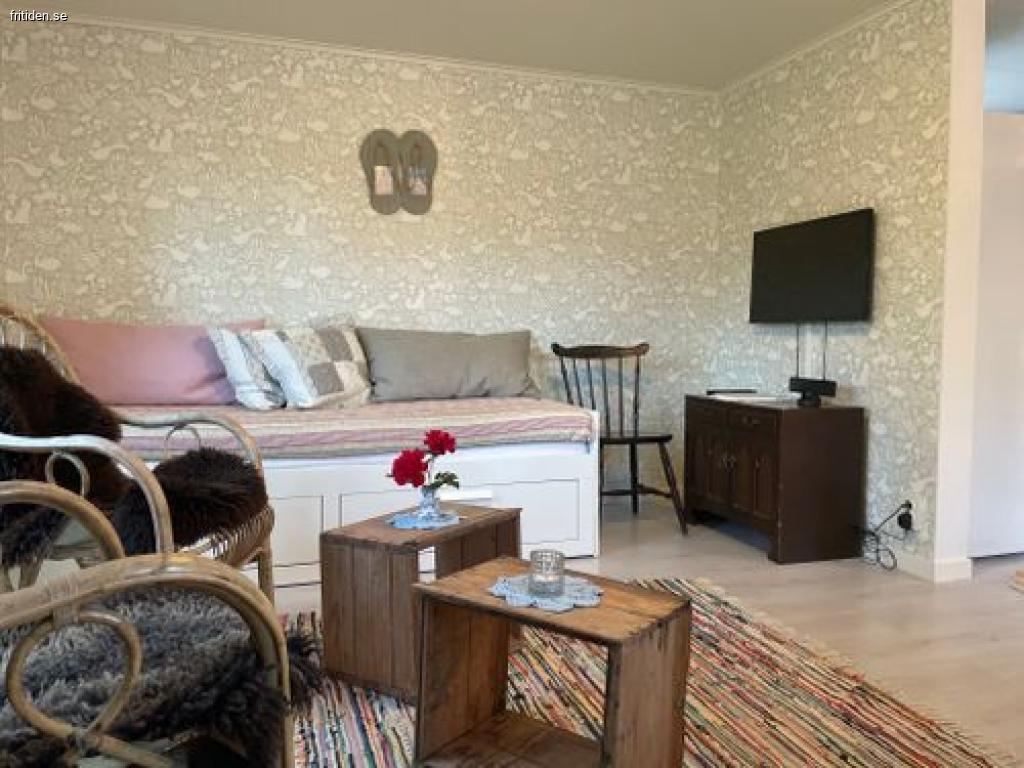 Vårt lilla gårdshus på 35 kvm erbjuder allrum, litet kök, badrum och sovloft - allt vad som behövs till din semester. I köket finns häll, ugn, micro, diskmaskin samt kyl och frys. Badrummet är fräscht med dusch, golvvärme och tvättmaskin. En trappa upp på sovloftet finns fyra bekväma sängar och i allrummet finns en dagbädd med två sovplatser som annars fungerar som soffa när du vill slappa framför tv:n.