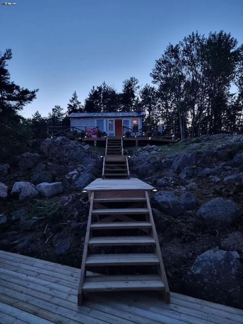 En unik, charmig stuga på en egen ö i metreoitsjön Hummeln.