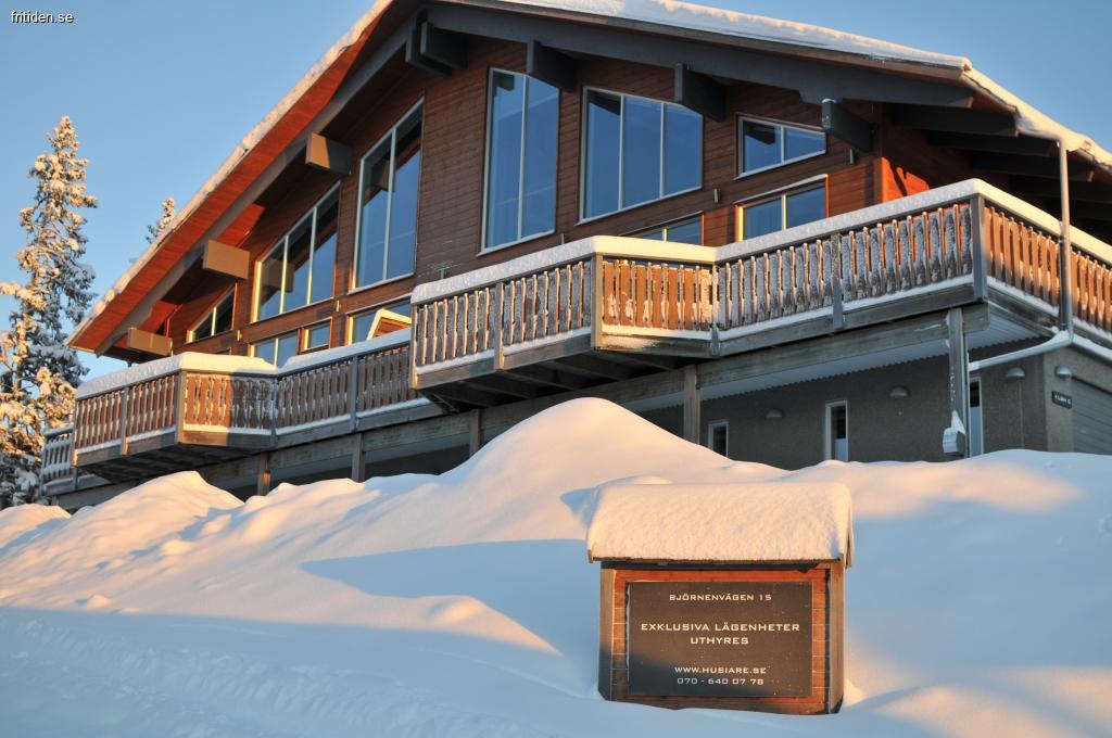Exklusivt fritidshus i Åre Björnen. Två st 10 bädds lgh på 140 kvm, ganska spektakulär planlösning med takhöjd upp till drygt 7 meter och fönsterytor från golv till tak en trappa upp. 2 av bäddarna under snedtak på övre våning. Lägenheterna har 2 toa / duschrum, bastu, braskamin, kök i ek och granit med all utrustning. 50 tums smart TV, stereo, DVD, Playstation. Fast bredband med internt nätverk för internetuppkoppling. Jacuzzi. Golvvärme i hela huset. Stort varmgarage 10X3 m för två bilar till vardera lägenheten. Separat rum i huset för ombyte där pjäxor och hjälmar kan lämnas. Suverän, fri utsikt över Skutan, Åredalen och Renfjället. Skidnedfarten går vid husknuten till hela Åre liftsystem, ett RIKTIGT Ski-in Ski-out läge. Mycket bra längdåkning med belysning upp till 5 km.