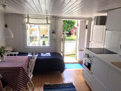 Bo med fräsch och marin atmosfär i klassiskt fiskarhus. Nytt kök. Egen ingång. 2 bäddar + 1 smalare extrabädd (t ex för ett barn) rymligt wc/duschrum, tv, liten uteplats för soliga frukostar.